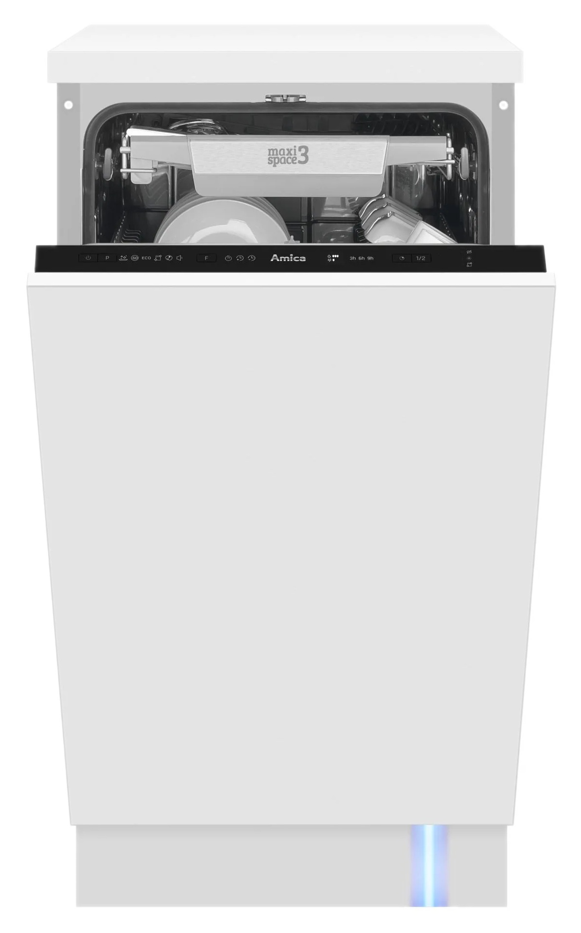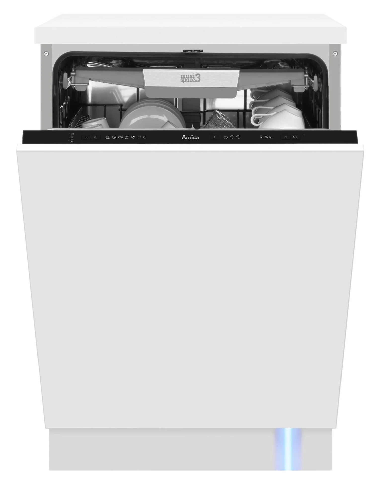 Amica oferuje zmywarki w standardowych szerokościach 60 cm oraz kompaktowych 45 cm. Wnętrza wyposażone są w regulowane kosze, składane uchwyty i półki na sztućce, co umożliwia elastyczne załadunki naczyń. Pojemność zmywarek wynosi od 9 do 14 kompletów, zależnie od modelu, a drzwi przystosowane są do montażu pełnego frontu meblowego.