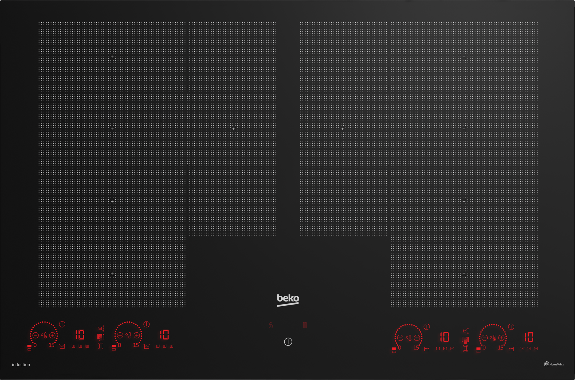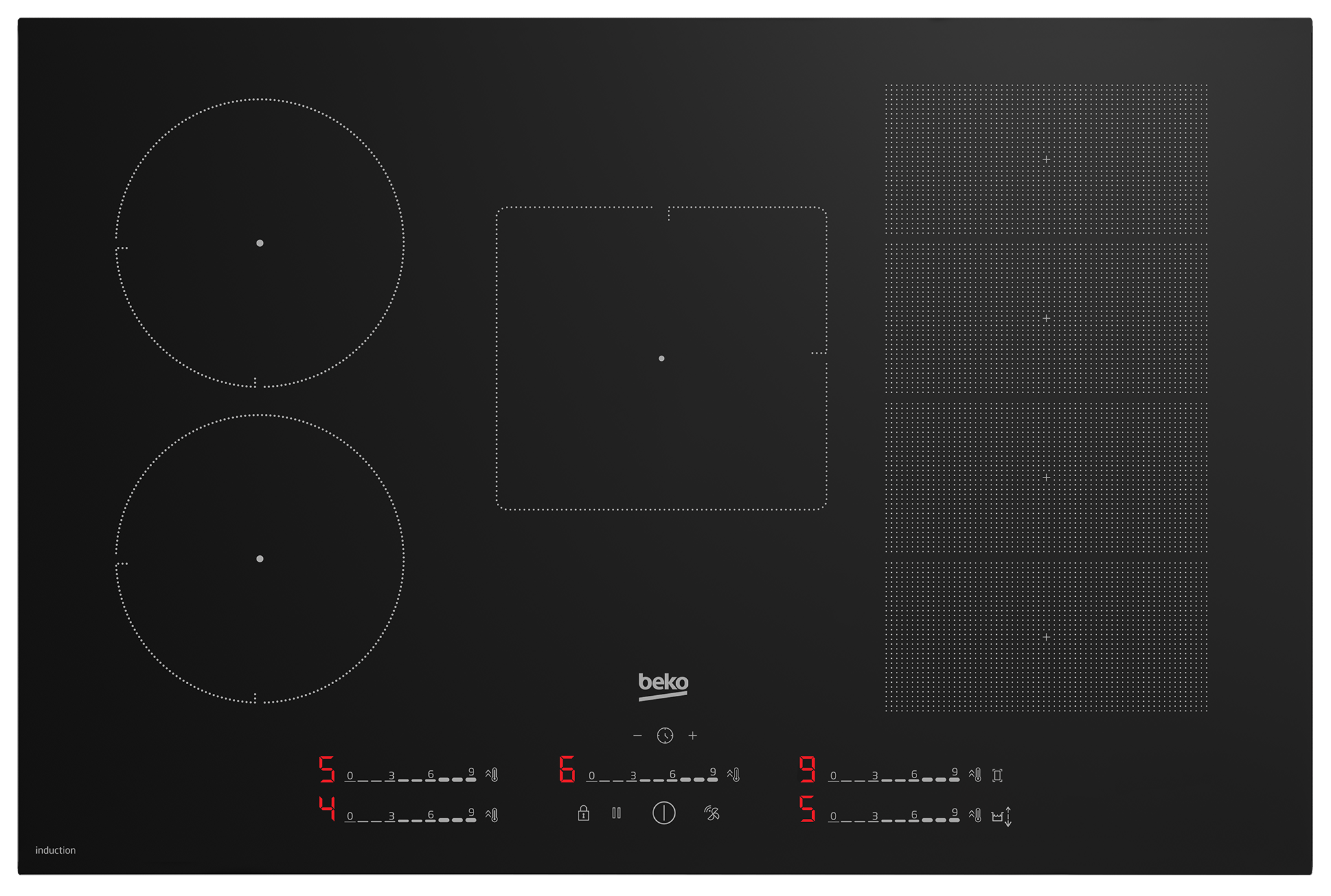 • funkcja łączenia dwóch pól w jedną większą strefę (Bridge Zone), idealna do większych garnków lub naczyń grillowych,