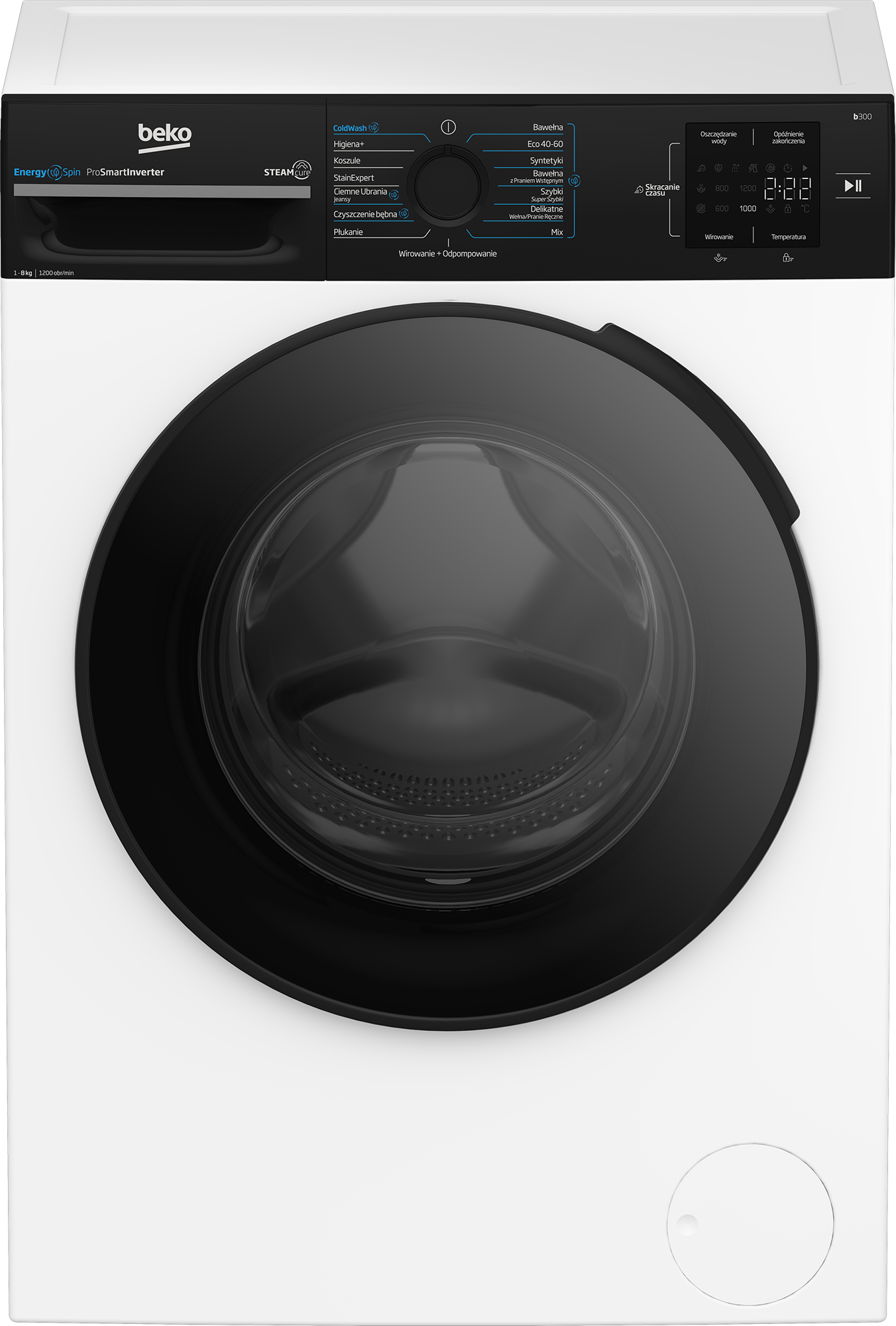 Pralki Beko wyposażone są w rozwiązania, które ułatwiają codzienne użytkowanie i dbają o efektywność prania. Zależnie od modelu możesz korzystać z funkcji parowych, które wspomagają usuwanie zagnieceń i bakterii, krótkich cykli prania – nawet w 14 minut, a także automatycznego dostosowania zużycia wody i energii do załadunku. Modele z silnikiem inwerterowym pracują ciszej i zużywają mniej energii. Dodatkowo dostępne są programy specjalne, takie jak pranie odzieży sportowej, antyalergiczne czy odświeżanie parowe. Obsługa jest prosta, a funkcje takie jak opóźniony start, blokada rodzicielska czy wskaźnik czasu do końca cyklu zwiększają wygodę użytkowania.