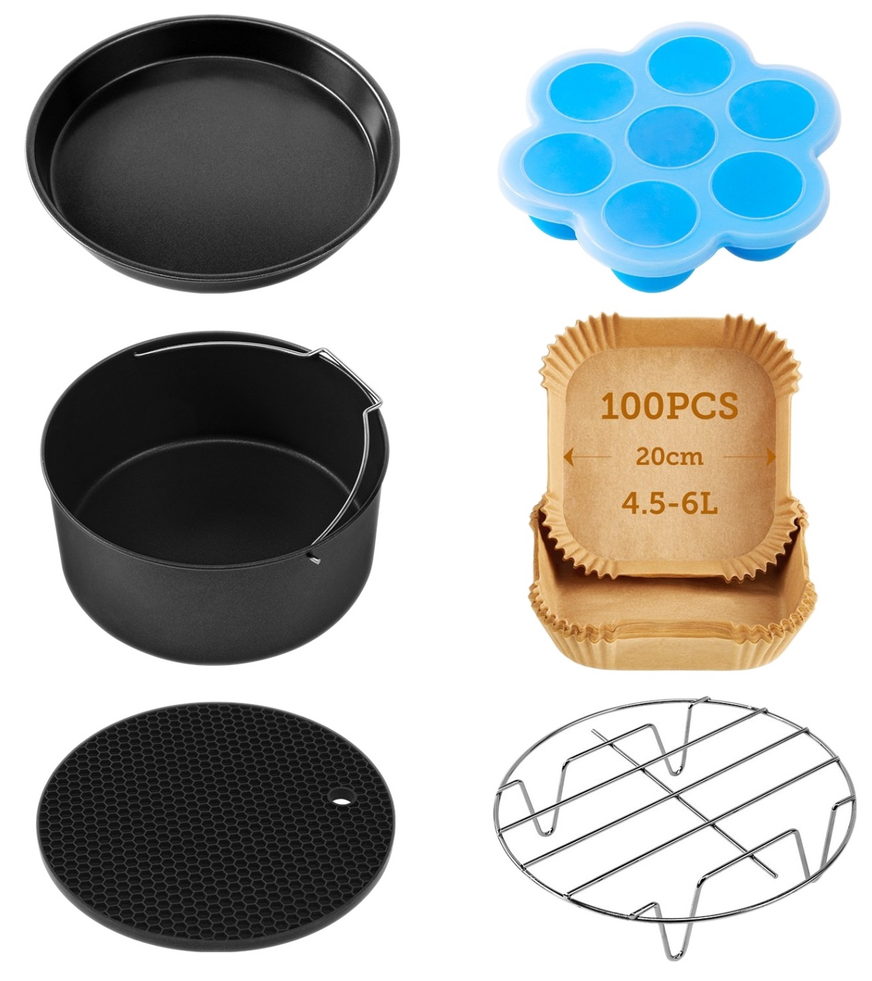 1x Frytkownice,1x Podręcznik użytkownika,1x Książka z przepisami,1x Tacka na okruchy,1x Stojak pod grill,1x Pyta grillowa,1x Uchwyt(y)