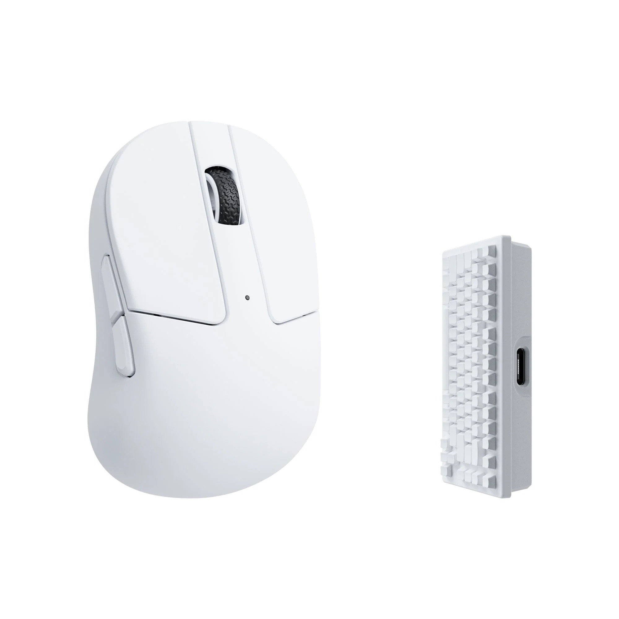 1x Myszka, 1x Typ-C do Typ-C kabel, 1x Typ-A do Typ-c Adapter, 1x Adapter przedłużający do odbiornika, 1x odbiornik 2,4 GHz typu A