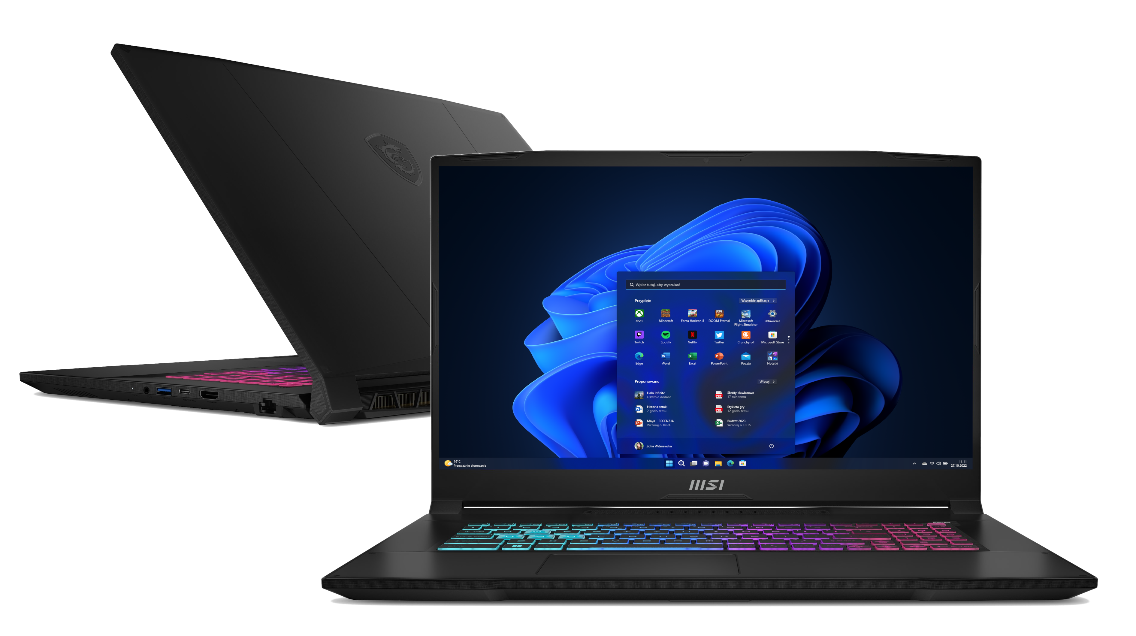 MSI projektuje laptopy z myślą o trwałości, ergonomii i efektywnym odprowadzaniu ciepła. W zależności od modelu możesz wybrać: