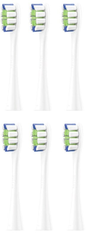 Końcówki wykonano z tworzyw dopuszczonych do kontaktu z żywnością, wolnych od lateksu i BPA. Włosie ma zaokrąglone końce, co zmniejsza ryzyko podrażnienia dziąseł i zwiększa komfort użytkowania. Dla zachowania higieny i efektywności czyszczenia zaleca się wymianę końcówki co 3 miesiące.