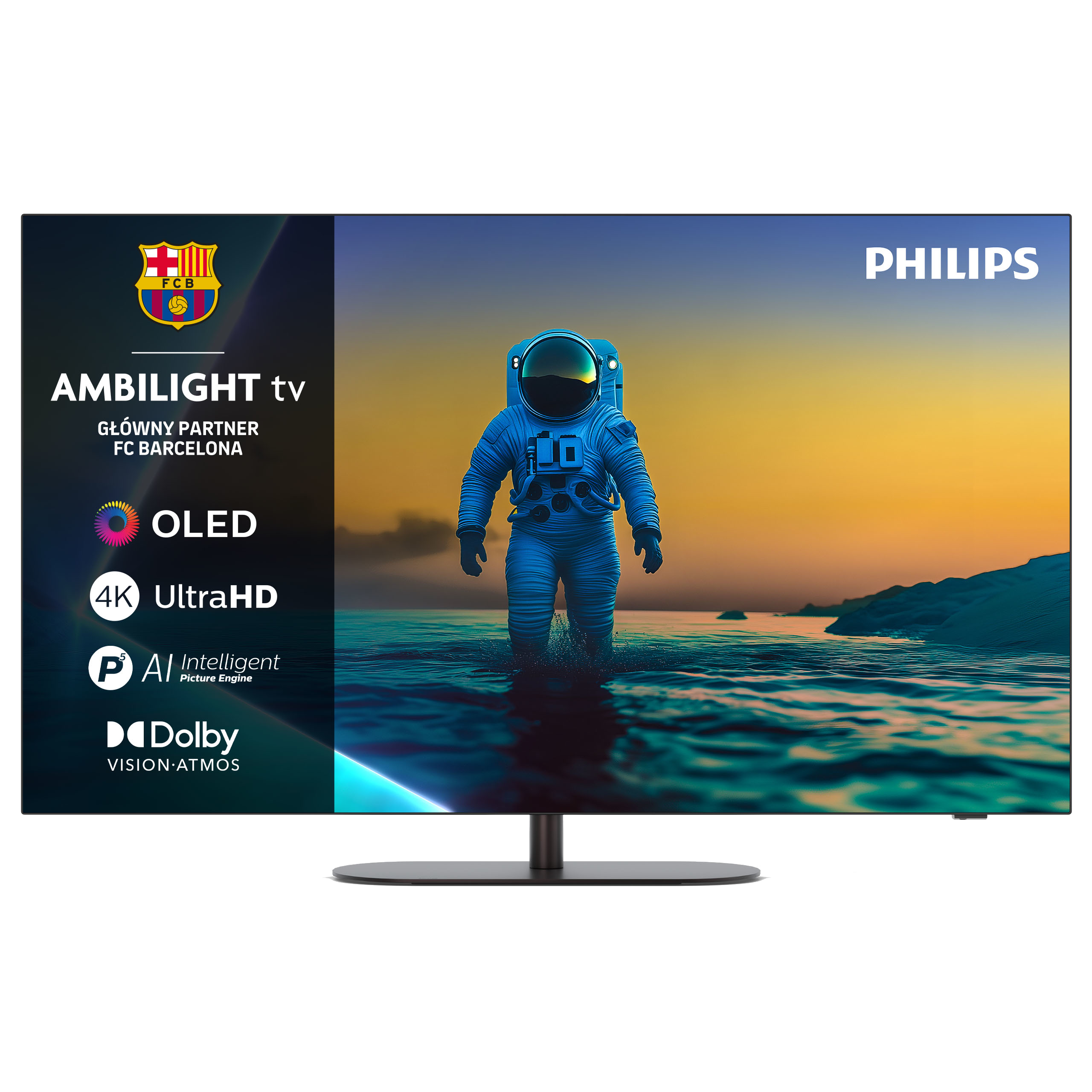 z technologią Ambilight – emitującą kolorowe światło z tyłu obudowy, zsynchronizowane z obrazem.