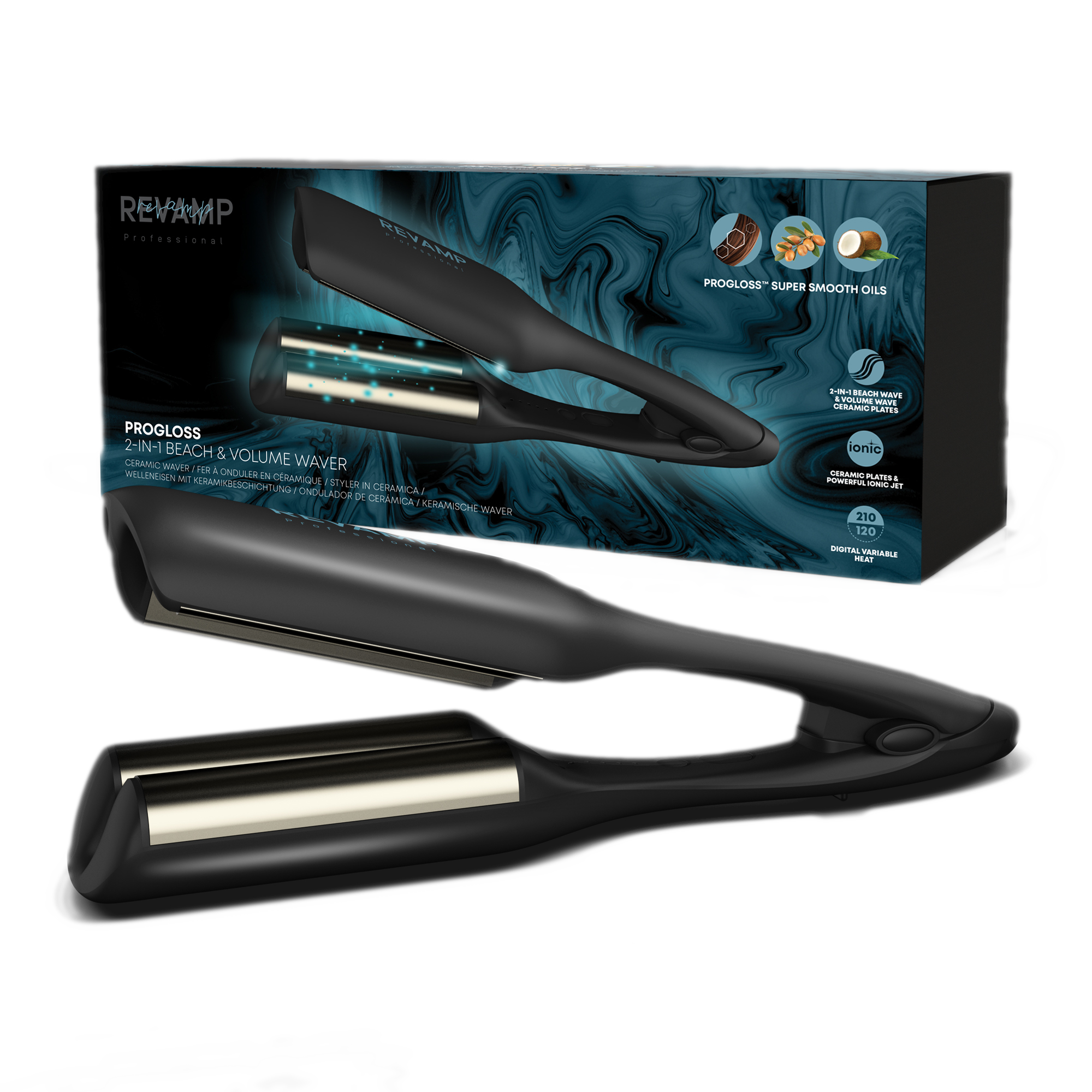 Falownica REVAMP Progloss 2-in-1 Beach & Volume Waver WV-3000 Czarny