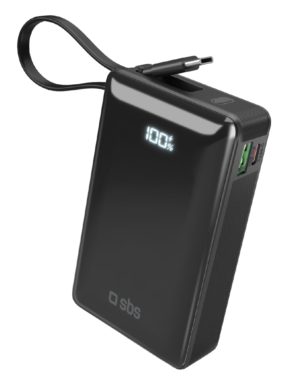 Powerbank SBS 10000mAh 20W LCD z kablem Czarny