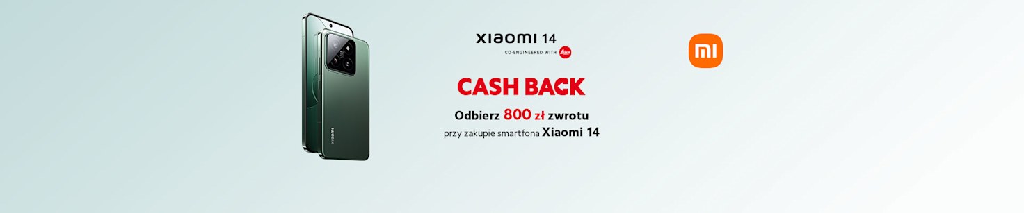 Zarejestruj zakup w okresie 19.03-12.04.2024 na stronie www.promocjexiaomi.pl/cashback14