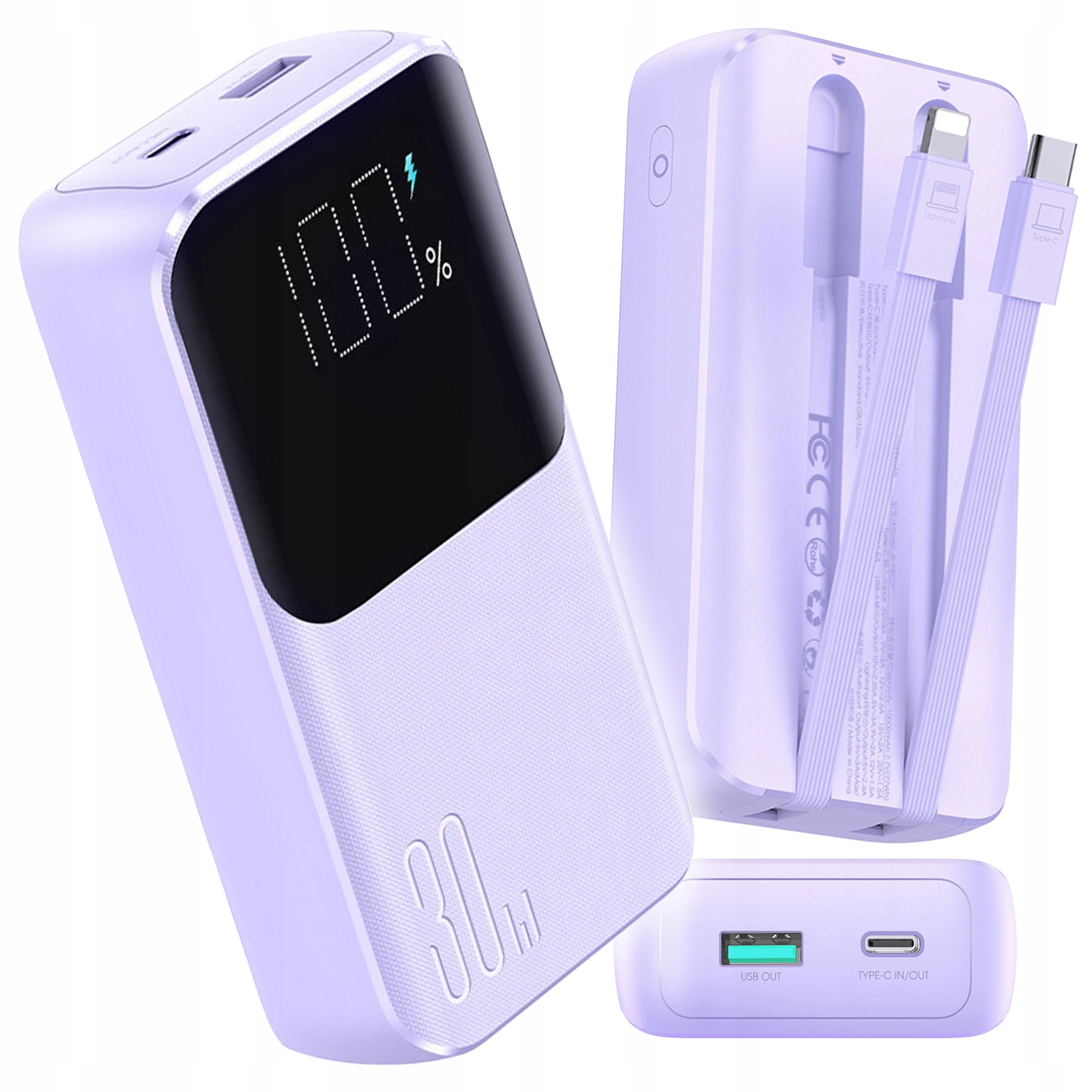 Powerbank z wbudowanymi kablami Lightning i USB-C