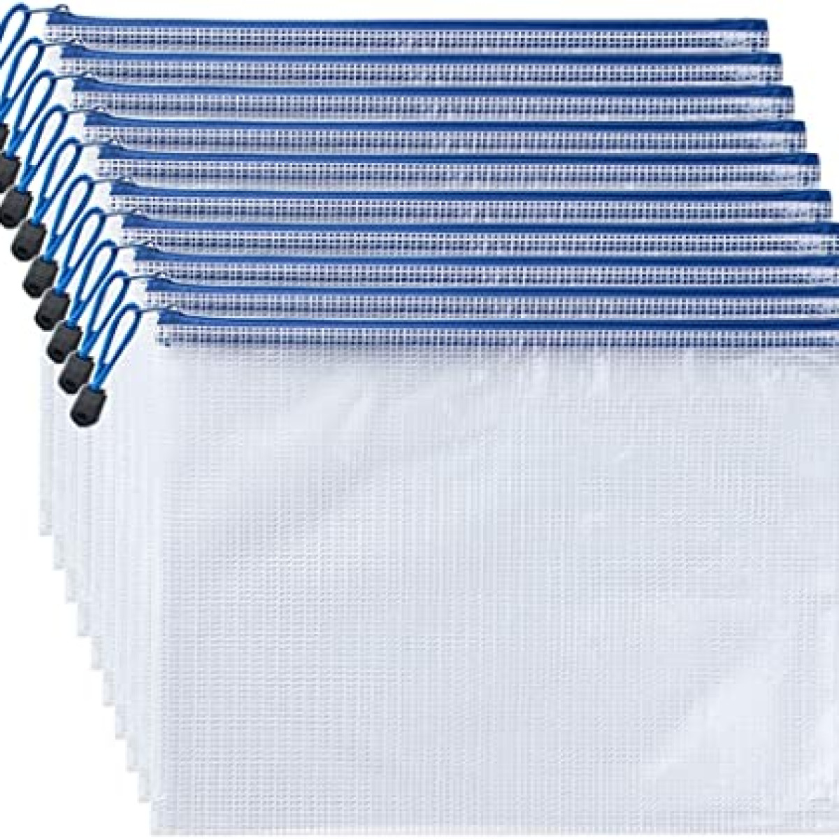 24 przezroczyste kieszenie na dokumenty zapinane na zamek błyskawiczny: 12 szt. A4 (33 x 24 cm) + 12 szt. A5 (23,5 x 17,5 cm), woreczek OPP