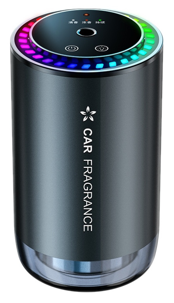 Połączenie dyfuzora zapachowego i nawilżacza, Technologia ultradźwiękowa, Podświetlenie LED, Pojemność akumulatora: 300mAh, Pasuje do uchwytu na kubek, Pojemność butelki: 50ml, Czas pracy ciągłej: ok. 2h, Tryby pracy: ciągły/przerywany