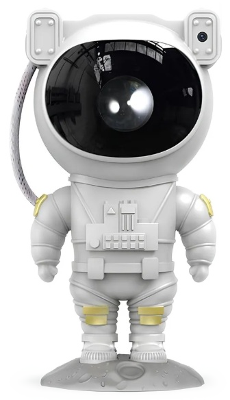 Głowa astronauty, dzięki magnetycznemu obrotowi o 360°, wyświetla mgławice w dowolnym kierunku, Regulowane ramiona, Regulacja kolorów, jasności i częstotliwości migania, Timer (45min, 90min), 8 trybów projekcji