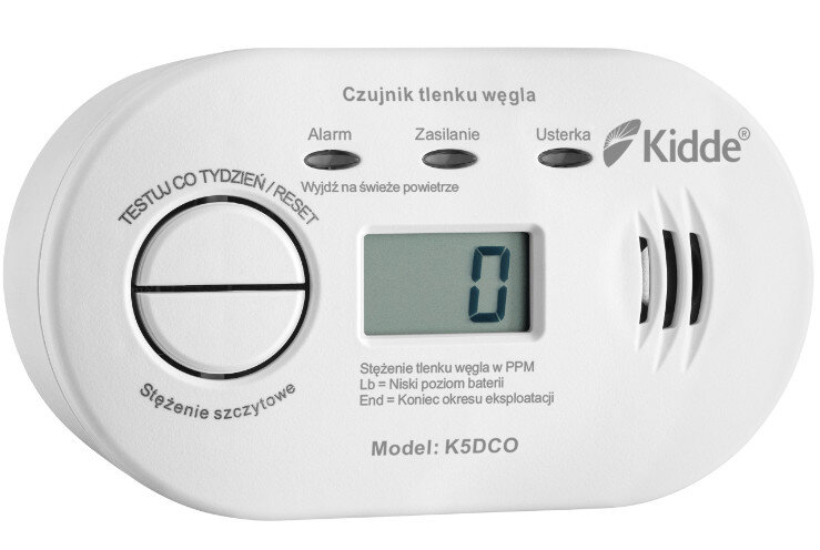 Czujnik tlenku węgla DPM Kidde K5DCO z wyświetlaczem LCD