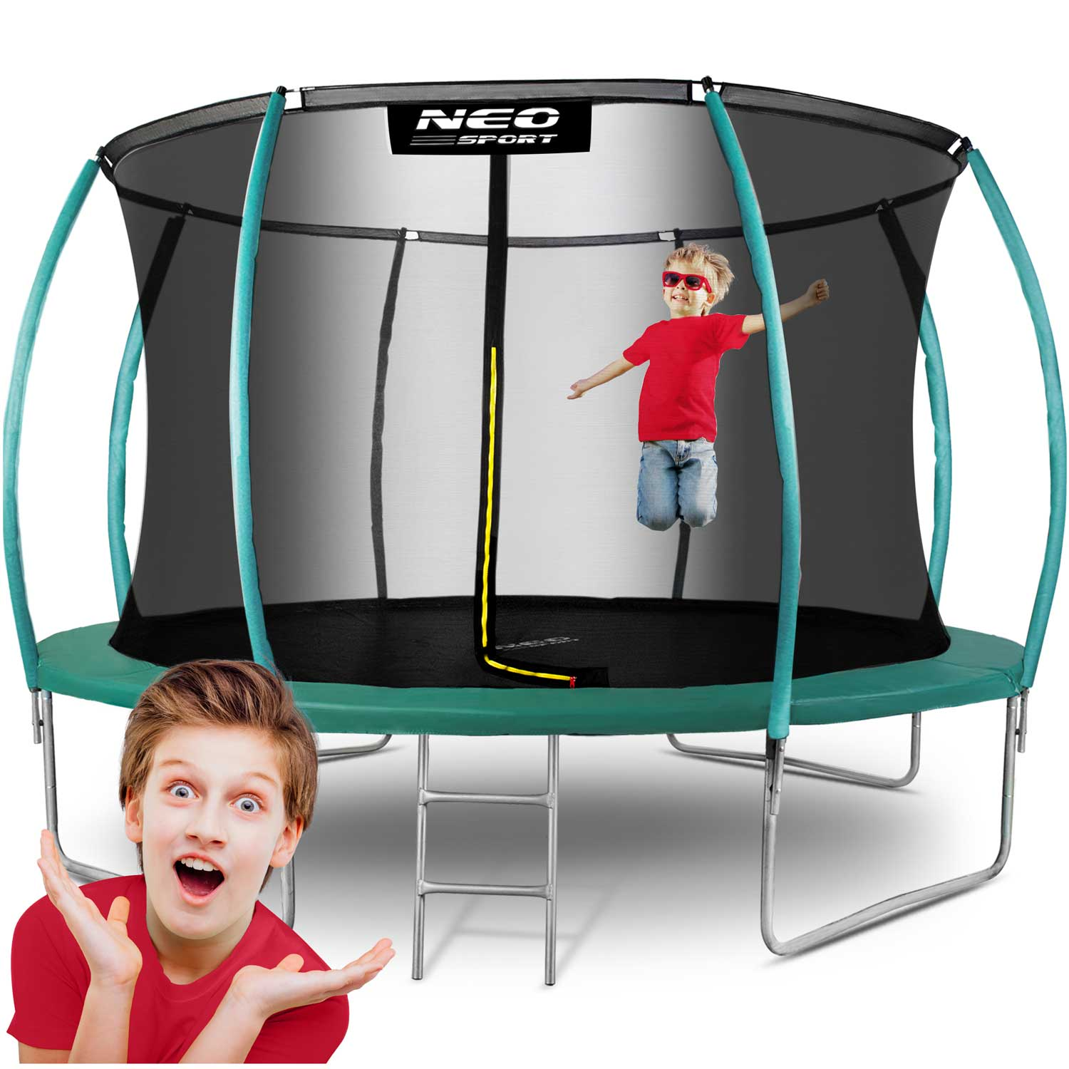 Trampolina ogrodowa 374 cm (12ft), siatka wewnętrzna (zabezpieczająca), metalowa drabinka