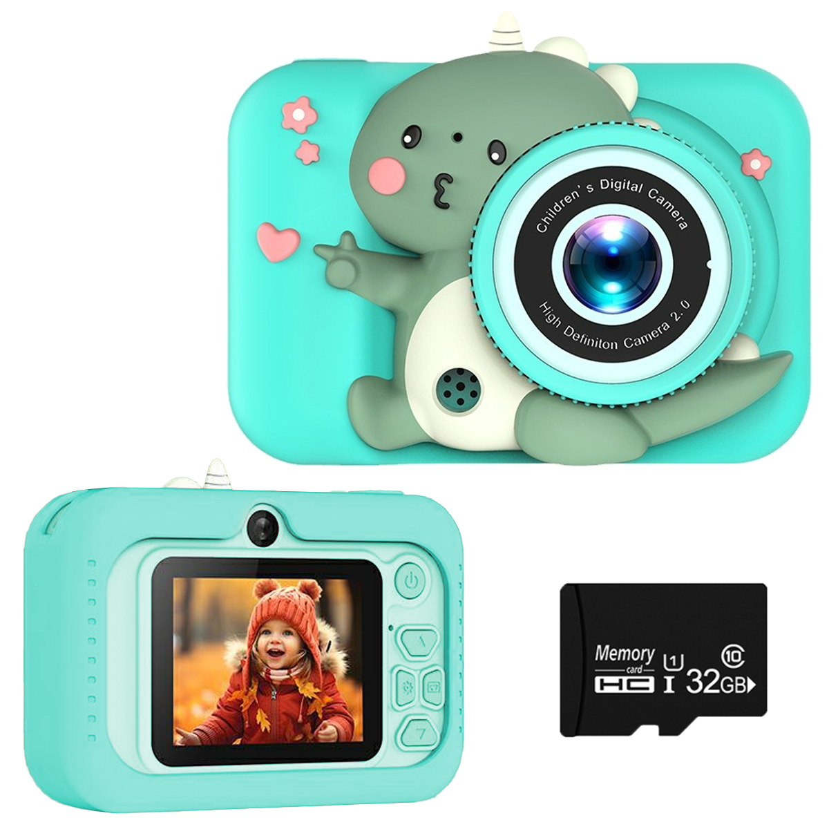 Aparat cyfrowy KINSI Q6 2.0'' IPS Dziecięcy Dinozaur 32GB Zielony