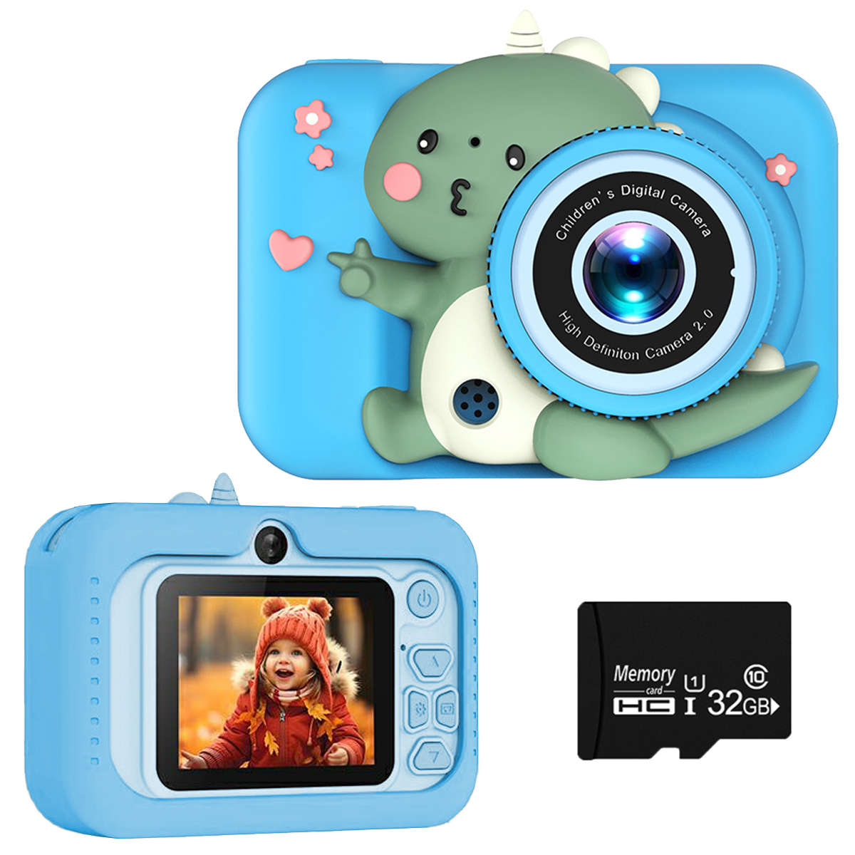 Aparat cyfrowy KINSI Q6 2.0'' IPS Dziecięcy Dinozaur 32GB Niebieski