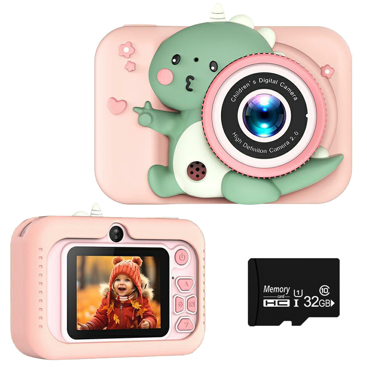 Aparat cyfrowy KINSI Q6 2.0'' IPS Dziecięcy Dinozaur 32GB Różowy