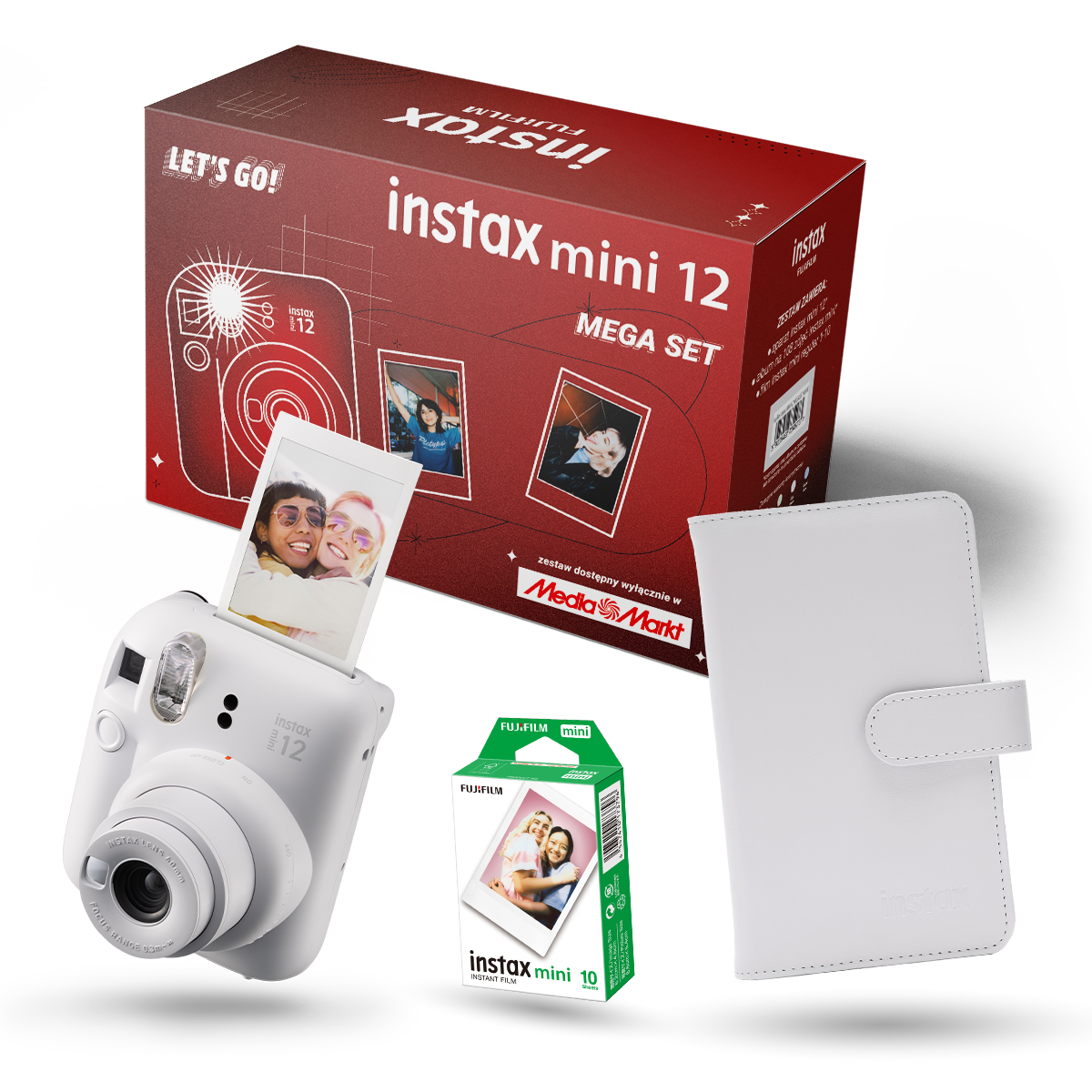 Aparat natychmiastowy, 2 × rolka termiczna, kabel USB-C, instrukcja obsługi, smycz, naklejki
