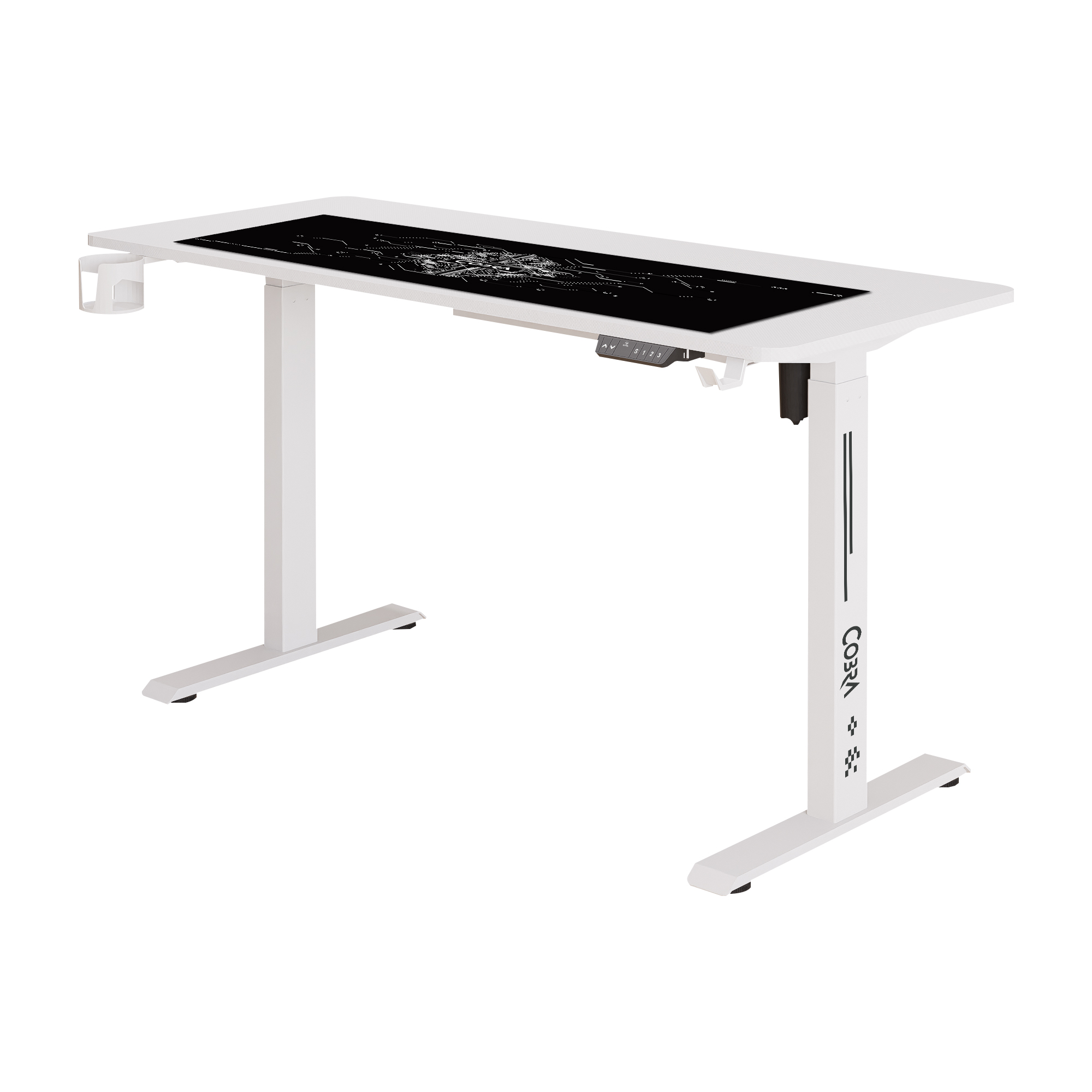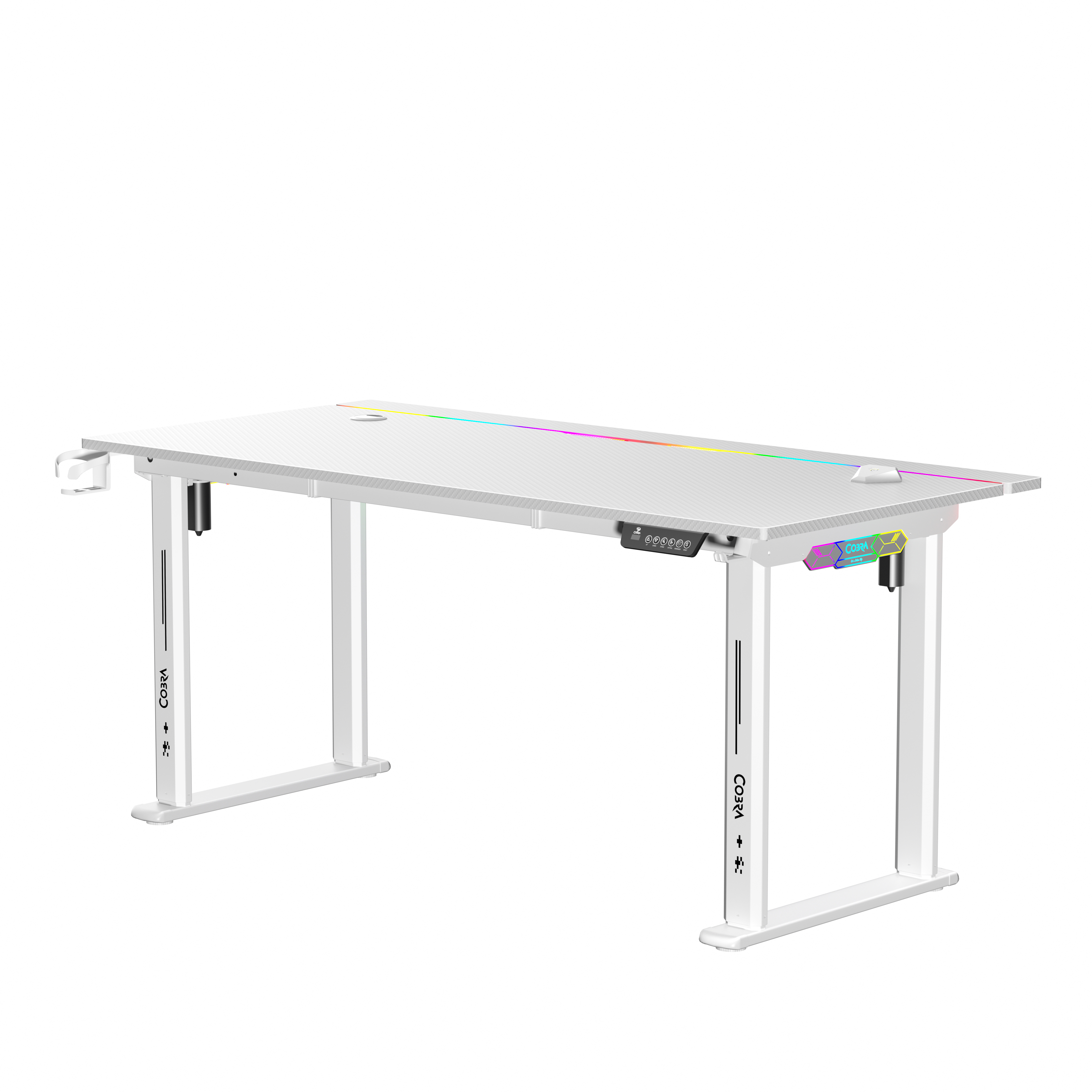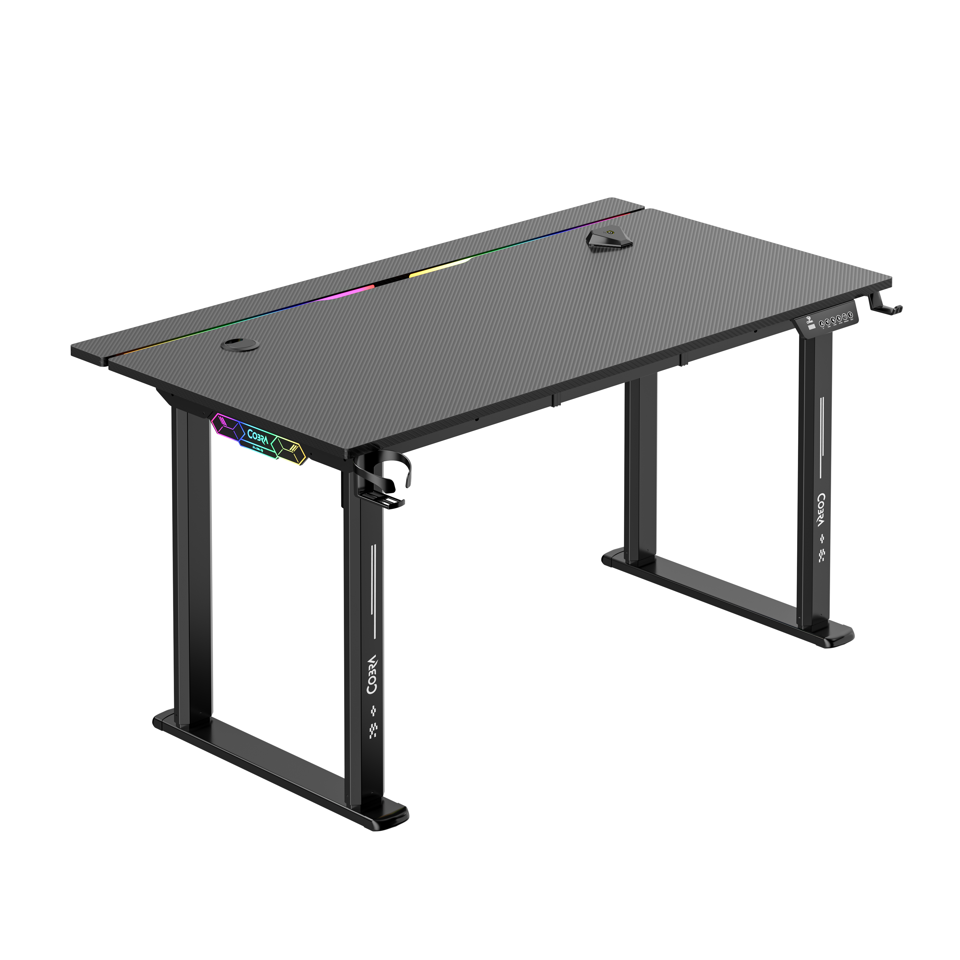Blat, nogi, osprzęt do sterowania, uchyt na kubek, uchwyt na słuchawki, instrukcję montażu