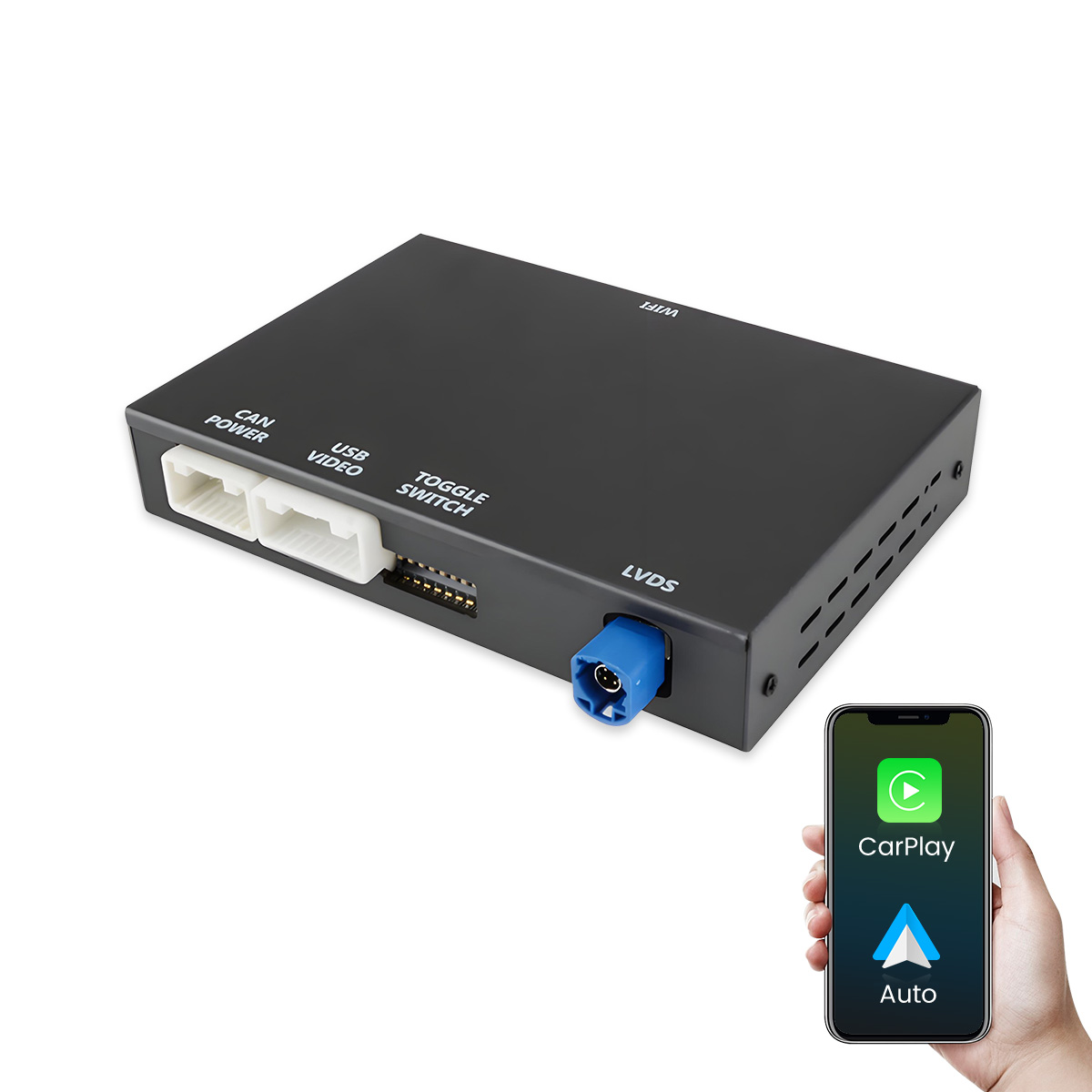 1*urządzenie CarPlay + instrukcja obsługi + kable + inne elementy