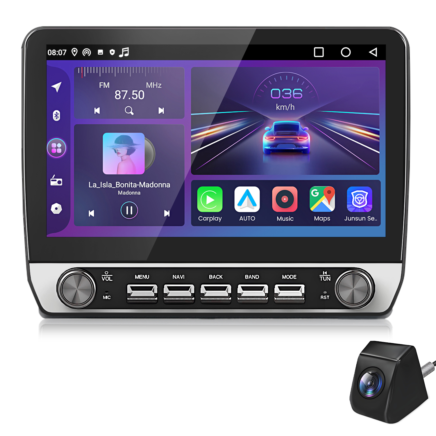 Radioodtwarzacz JUNSUN 6.36" Carplay 1 Din KAMERA+ Czarny