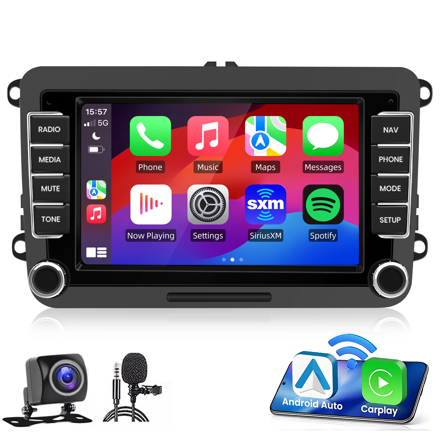 Kompatybilność: CarPlay oraz Android Auto Interfejs: USB/USB-C. WiFi: 5GHz 802.11 ac Bluetooth: 5.2/EDR Zasilanie: 5V, 1-2,1A. Materiał: Wytrzymałe tworzywo ABS Wymiary: 72 mm× 31 mm × 12 mm
