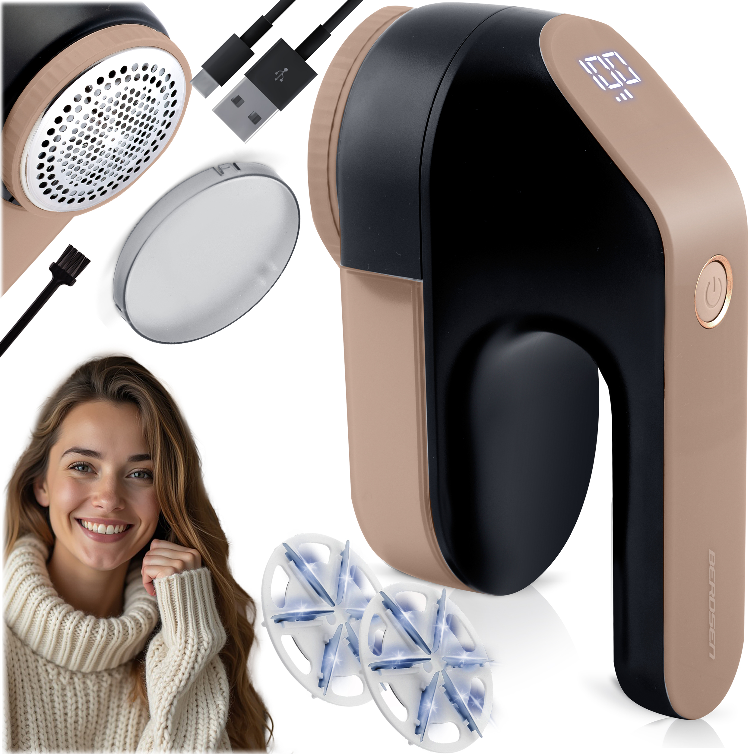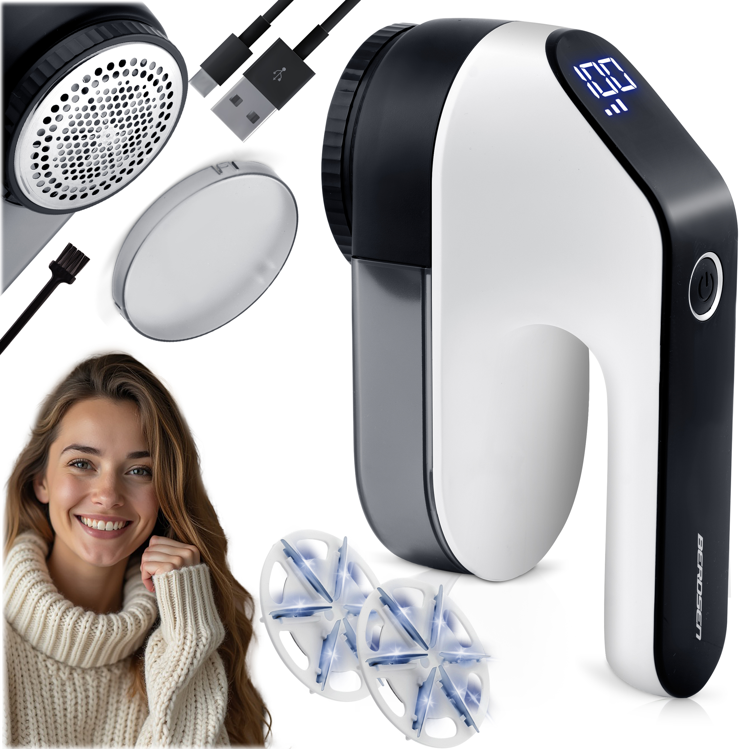 Średnica głowicy tnącej waha się od 4 do 7 cm – większa powierzchnia robocza przyspiesza usuwanie zmechaceń z dużych elementów garderoby.