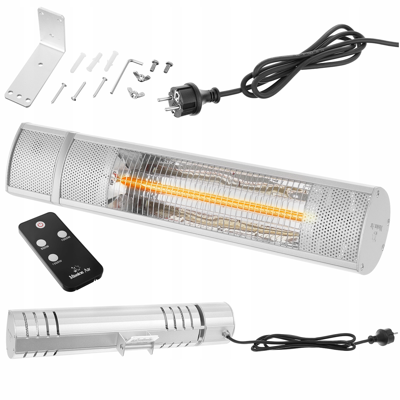 Grzejnik, Nóżki do postawienia na podłodze, Zestaw montażowy na ścianę, Pilot, Skrócona instrukcja obsługi
