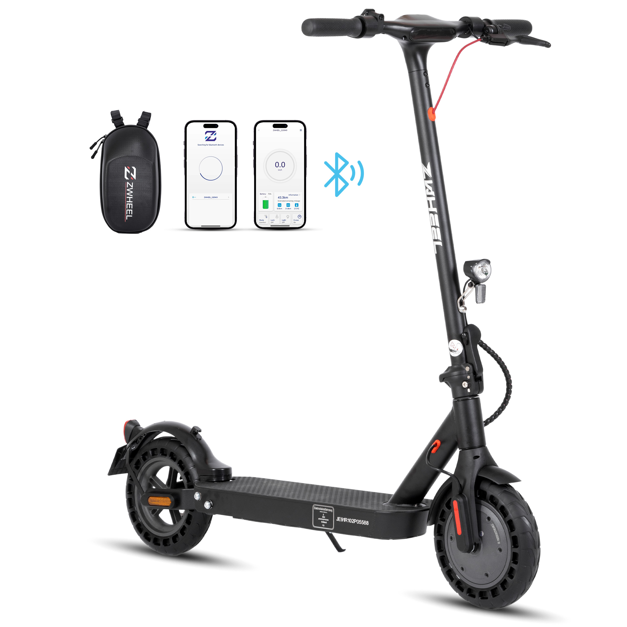 • koła pneumatyczne lub pełne (8,5"–10") – odporne na przebicia lub zapewniające amortyzację,