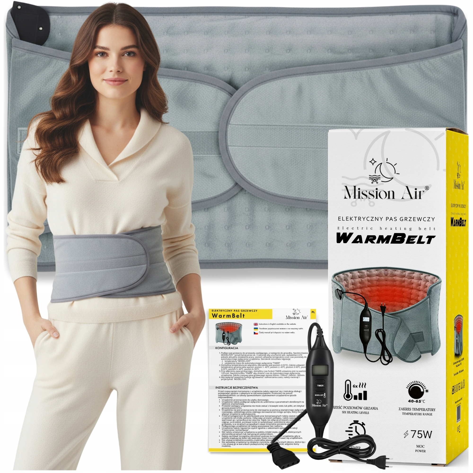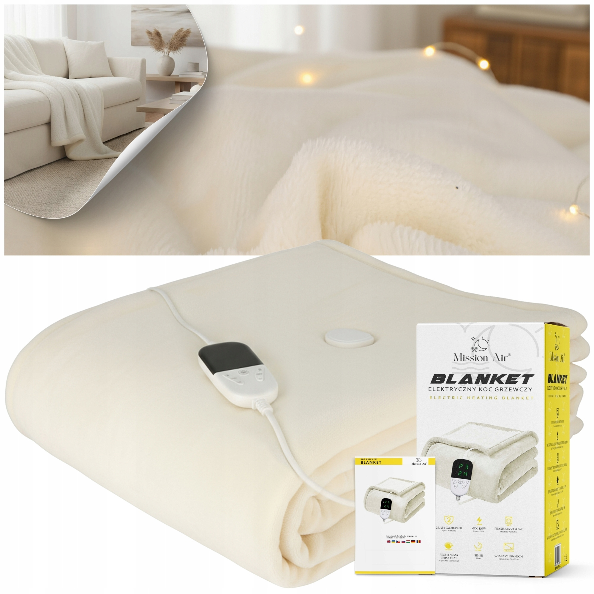Koc grzewczy MISSION AIR BLANKET 150×180 120 W 6 poziomów temperatury + termostat Biały
