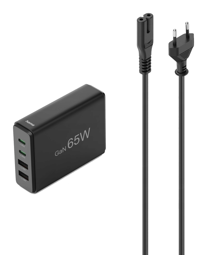 Ładowarka sieciowa HAMA GaN 65W, 2x USB-C, 2x USB-A Czarny