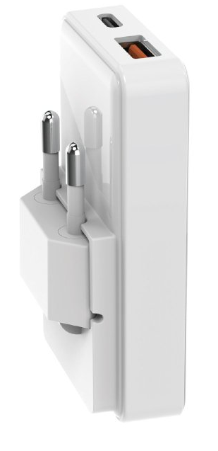 Składana pod kątem 90 stopni wtyczka, Power Delivery 65 W, USB-A z technologią AFC 18 W