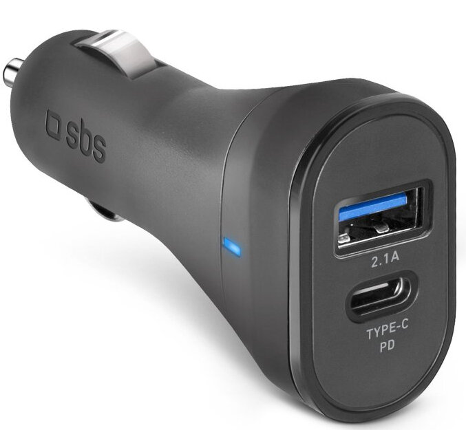 Ładowarka samochodowa SBS USB Type-C 3A + USB-A 2,1A Czarny