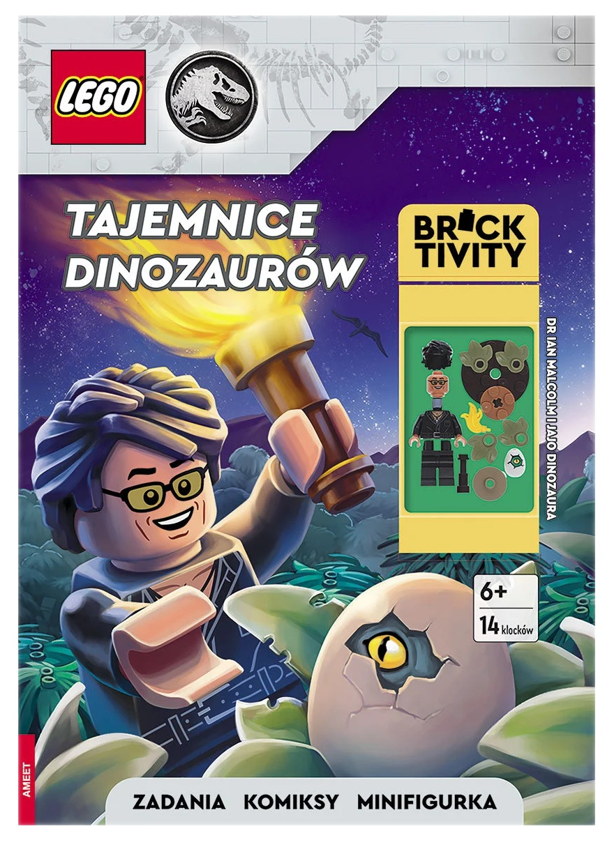 Książka, minifigurka Dr Ian Malcolm, 14 klocków LEGO