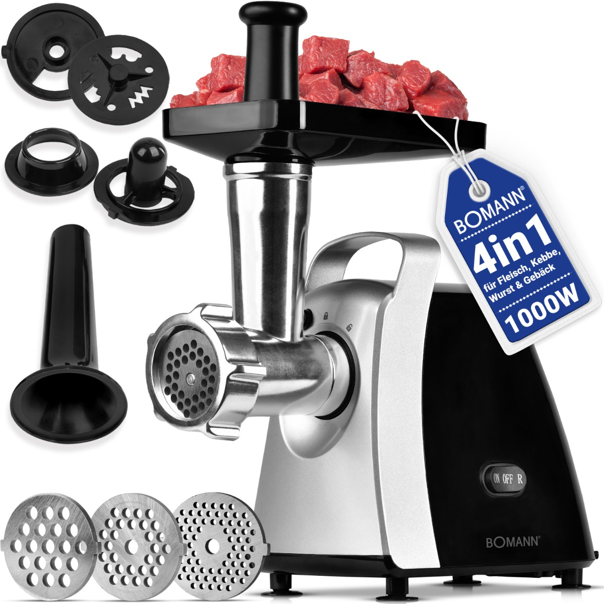 metalowych elementów tnących – zapewniających precyzyjne i szybkie mielenie różnych rodzajów mięsa.
