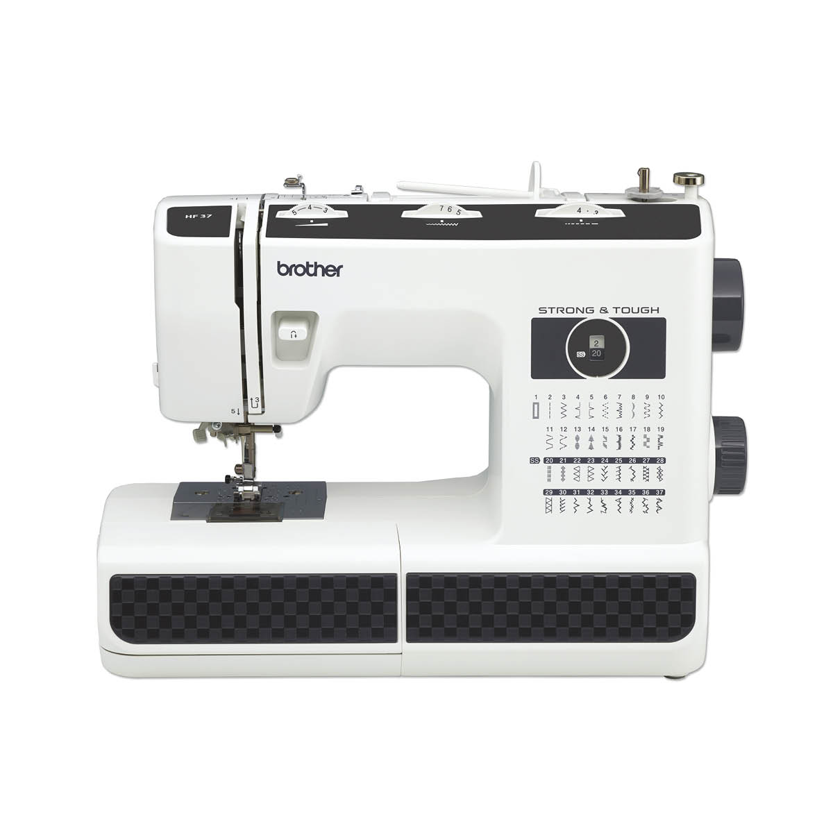 Maszyna, Skrócona instrukcja obsługi, Dźwignia podnoszenia stopki kolanem, Stolik powiększający pole pracy, Stopka do haftu, cerowania, pikowania z wolnej ręki, Stopka do przyszywania guzików, Stopka do ściegów satynowych, dekoracyjnych i aplikacji, Stopka do ściegu krytego (ślepego), Stopka do wykonywania automatycznej dziurki na guzik, Stopka do zamków (do użytku z Dual Feed), Stopka owerlokowa (odpowiednia do użytku z Dual Feed), Stopka standardowa (uniwersalna), Krążek blokujący szpulkę (duży), Krążek blokujący szpulkę (mały), Krążek blokujący szpulkę (średni), Nożny regulator obrotów z przewodem, Podkładka filcowa, Prowadnik do pikowania, Przecinak, Śrubokręt, Szczoteczka