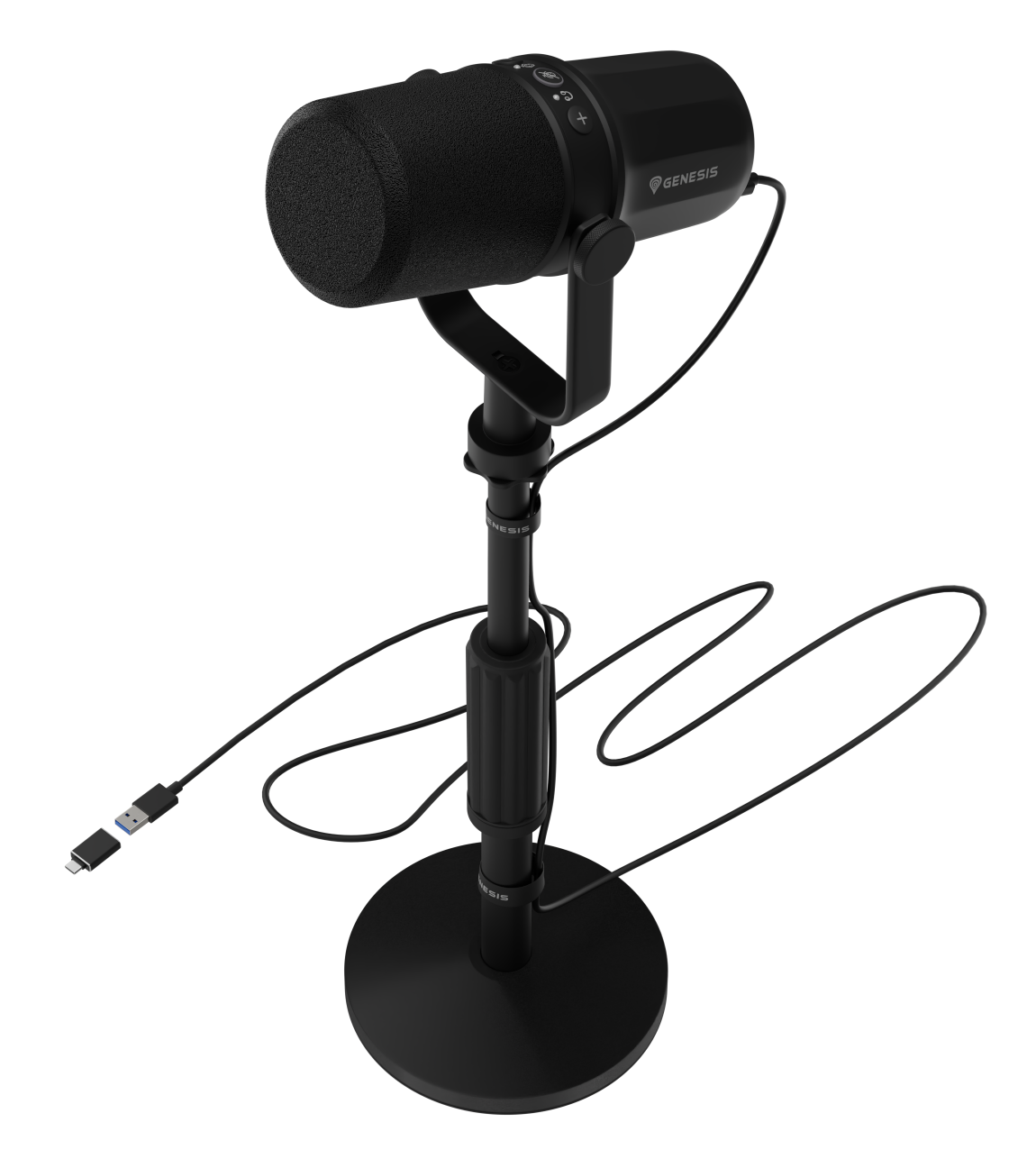 sterowanie z poziomu przycisków: mute, gain, monitoring, wybór charakterystyki kierunkowej.