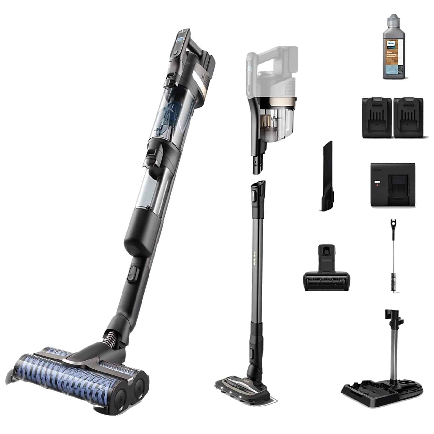 Odkurzacz pionowy PHILIPS AquaTrio XW9465/11 z funkcją aktywnego mycia, dwie baterie w zestawie Czarny