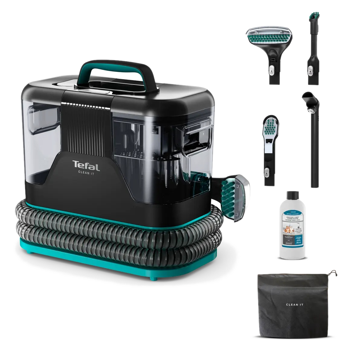 Odkurzacz piorący TEFAL IZ5020F0 Clean It 750W wymienne końcówki Czarno-turkusowy