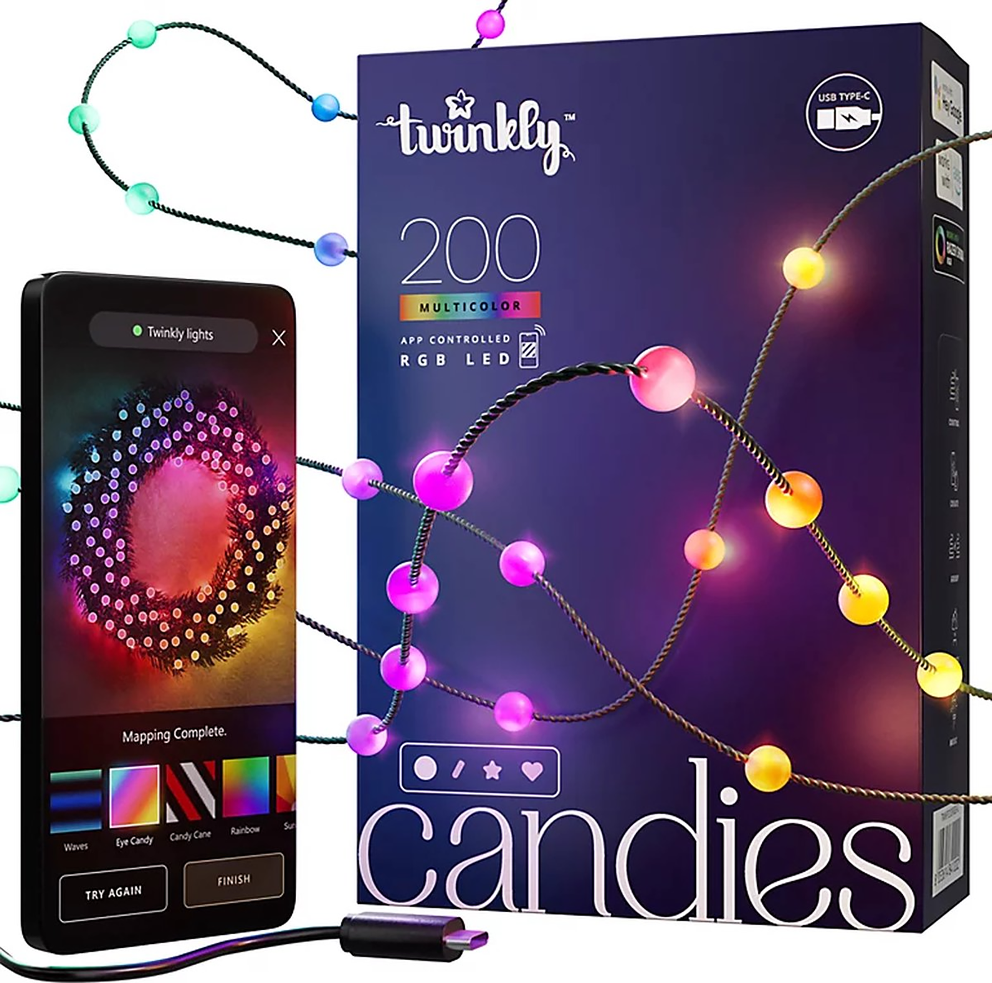 Oświetlenie Twinkly, kontroler, instrukcja obsługi, brak zasilacza USB-C (15 W) w zestawie