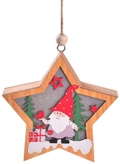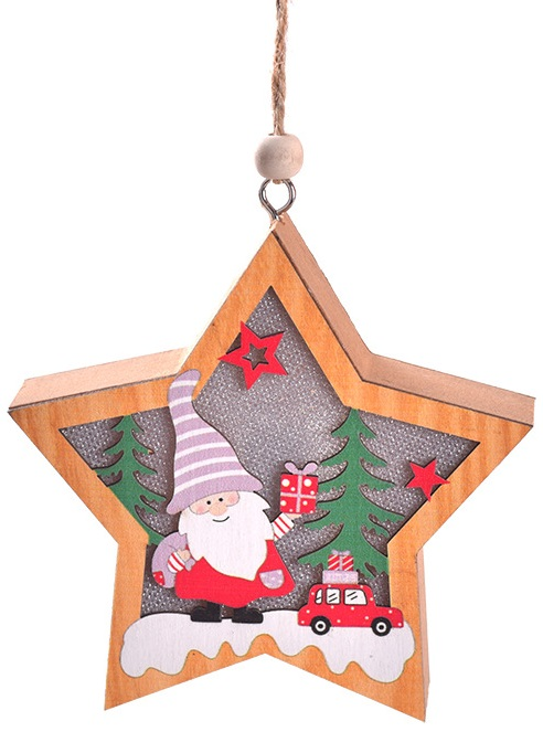 Lampka świąteczna BELINE drewniana skrzat i prezenty gwiazda