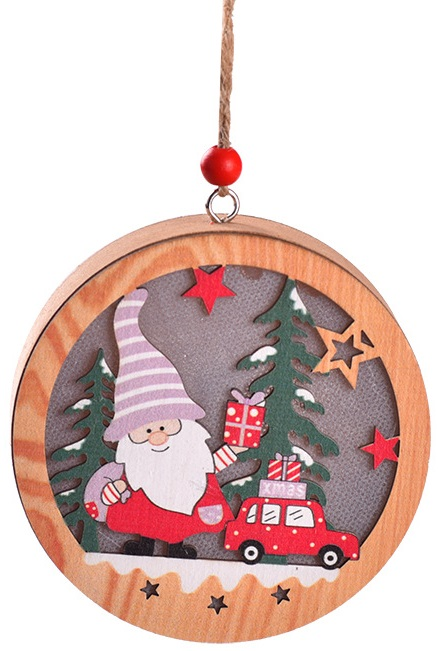 Lampka świąteczna BELINE drewniana skrzat i samochód okrągła