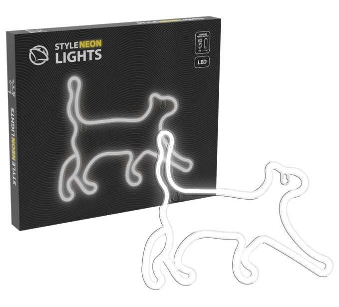 Style Neon Lights Kot biały/Zasilanie: USB 5V/1A / 3xAA 1,5V, moc 5W