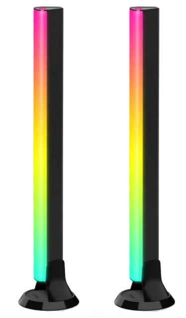 taśmy LED RGB – montowane za monitorem, biurkiem lub na ścianie, z możliwością zmiany koloru i efektów świetlnych,