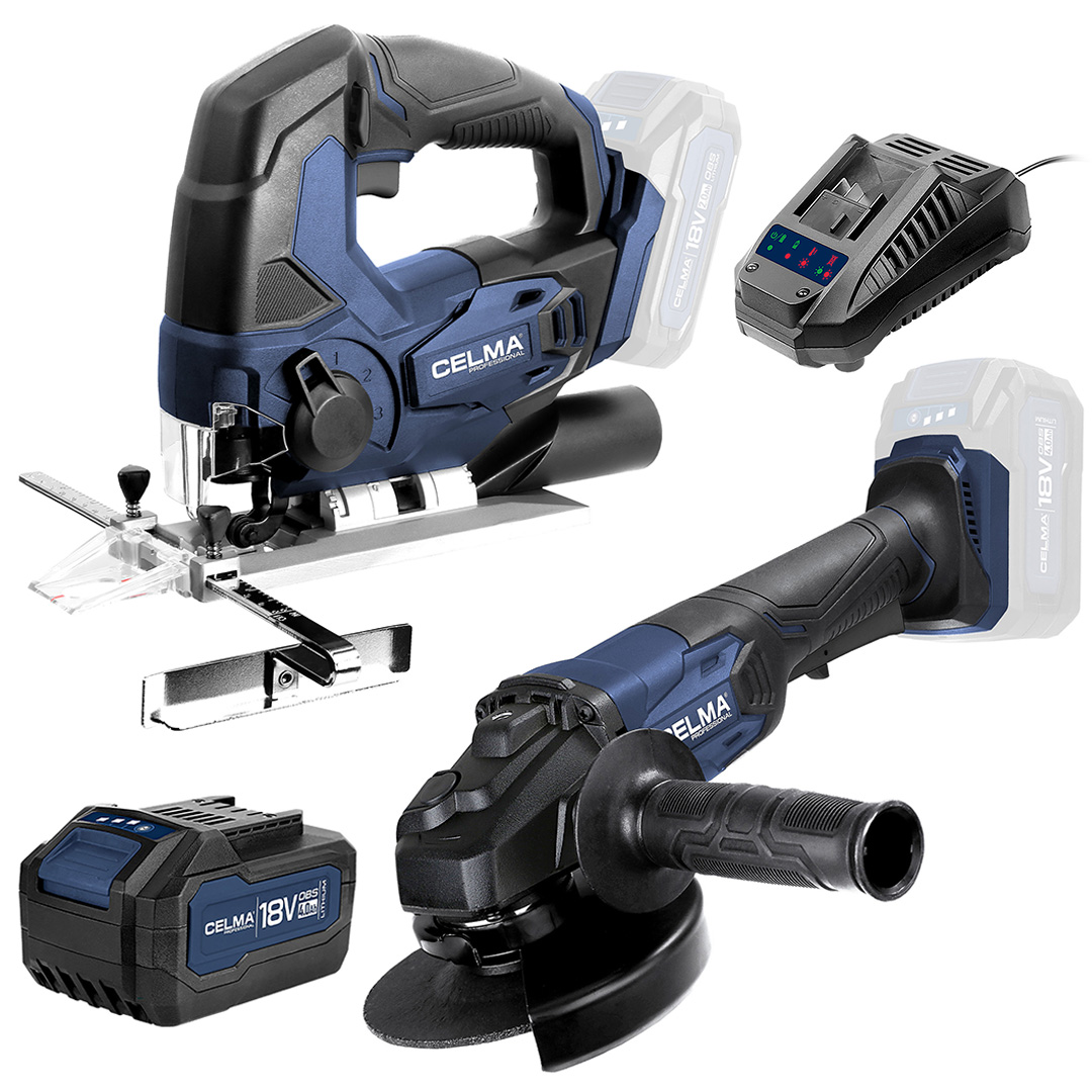 Wyrzynarka, szlifierka kątowa, akumulator, ładowarka