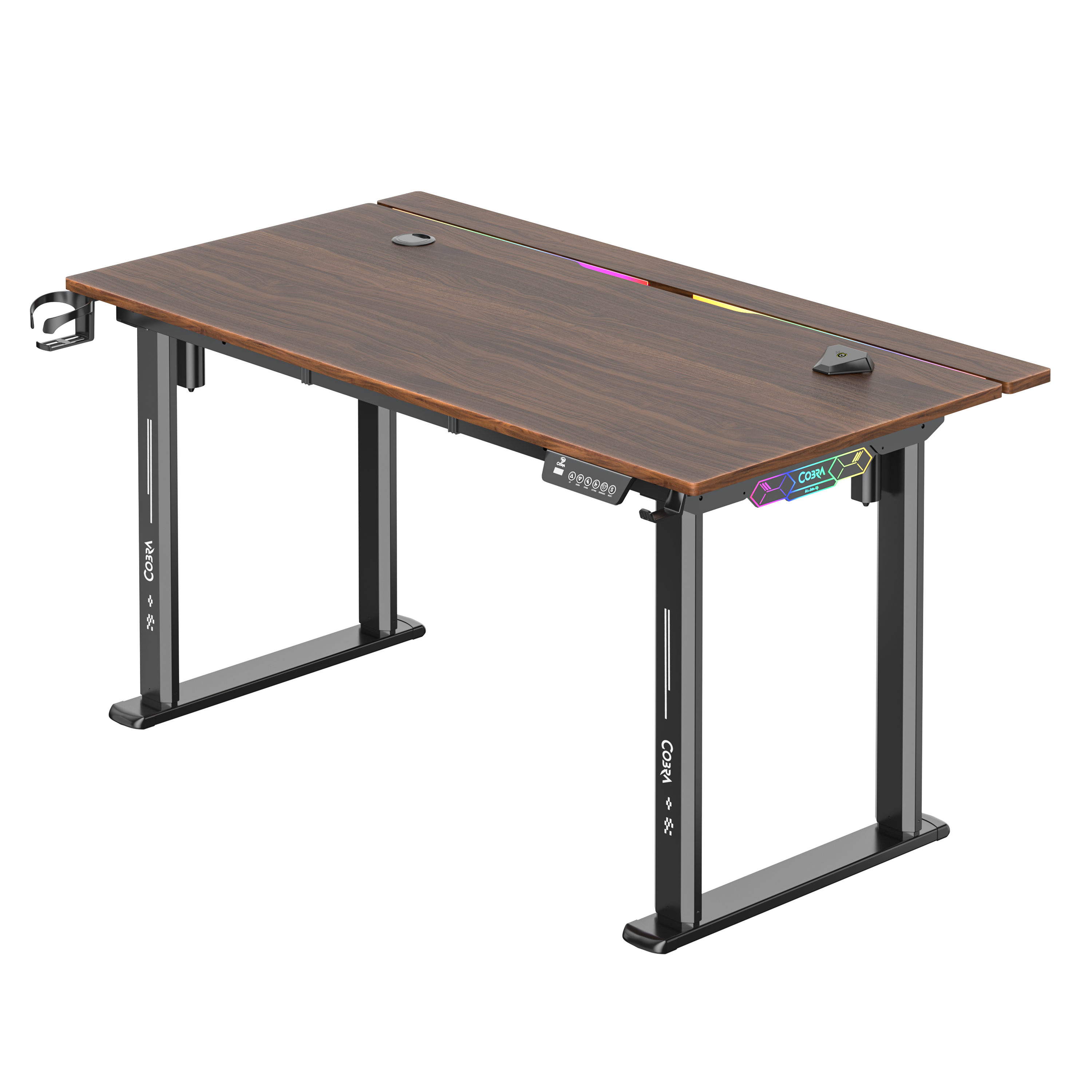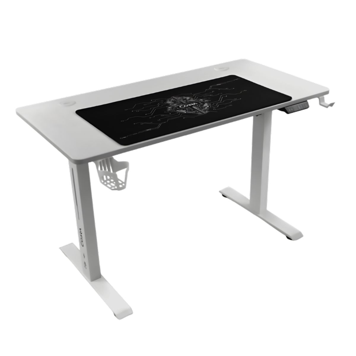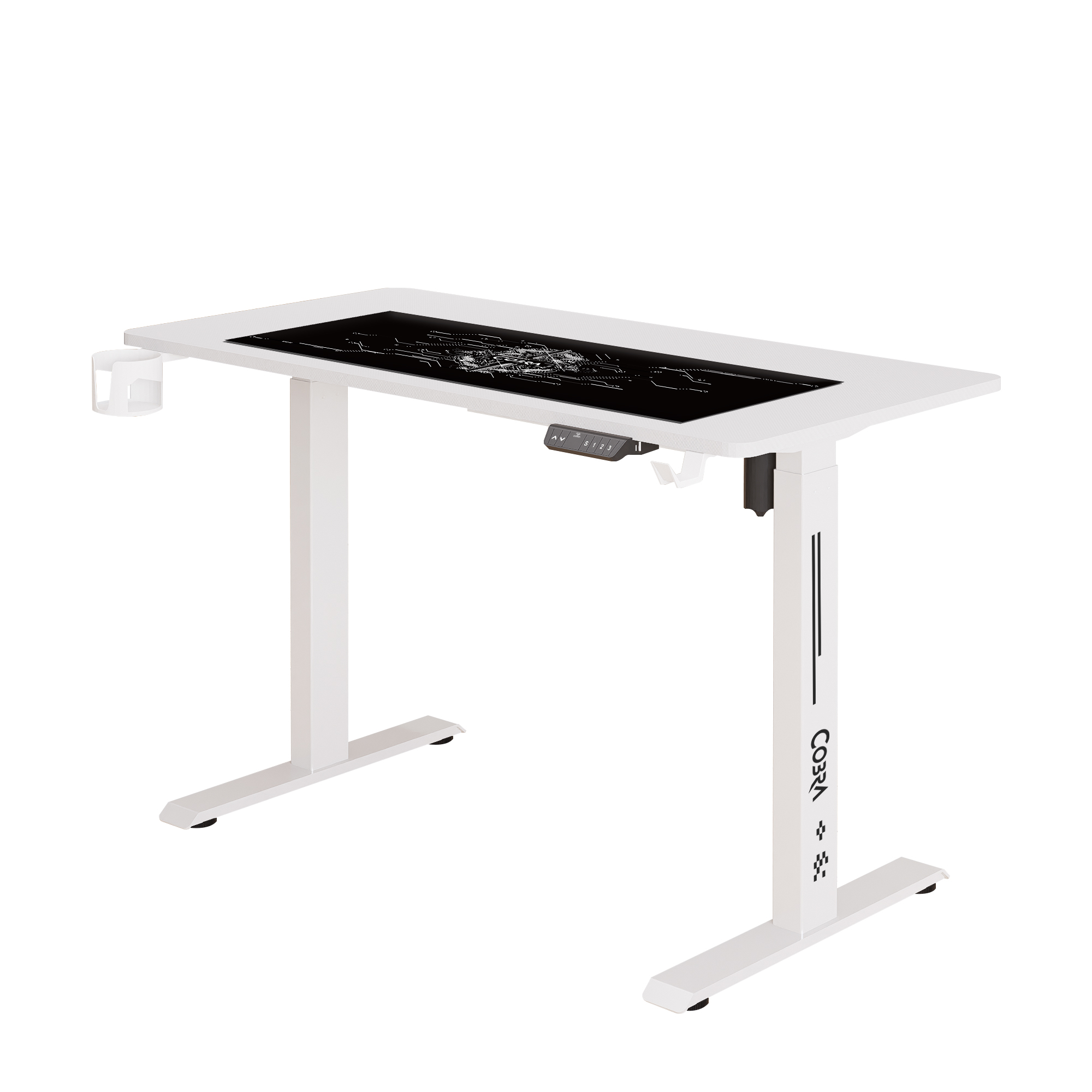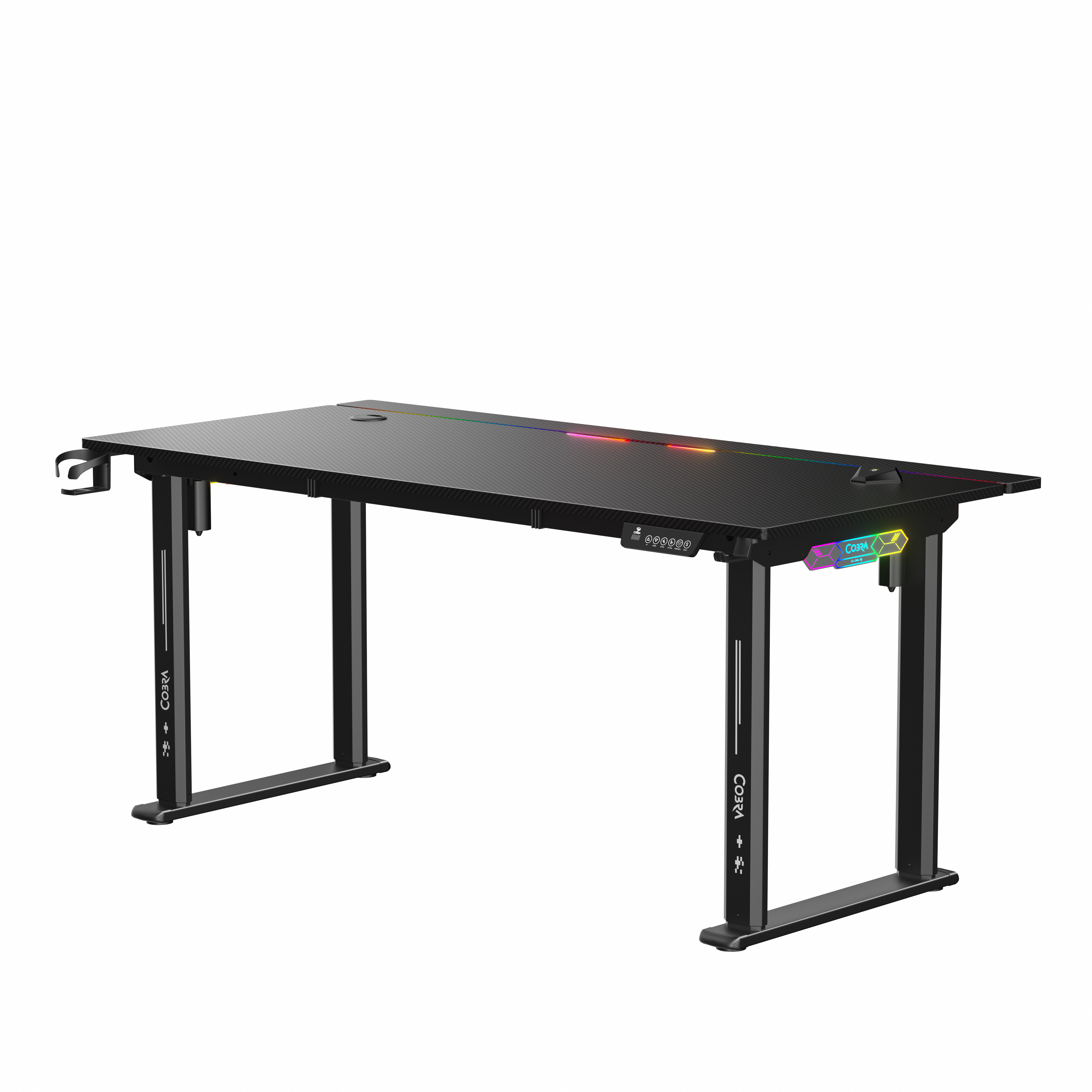 Blat, nogi, osprzęt do sterowania, uchyt na kubek, uchwyt na słuchawki, instrukcję montażu