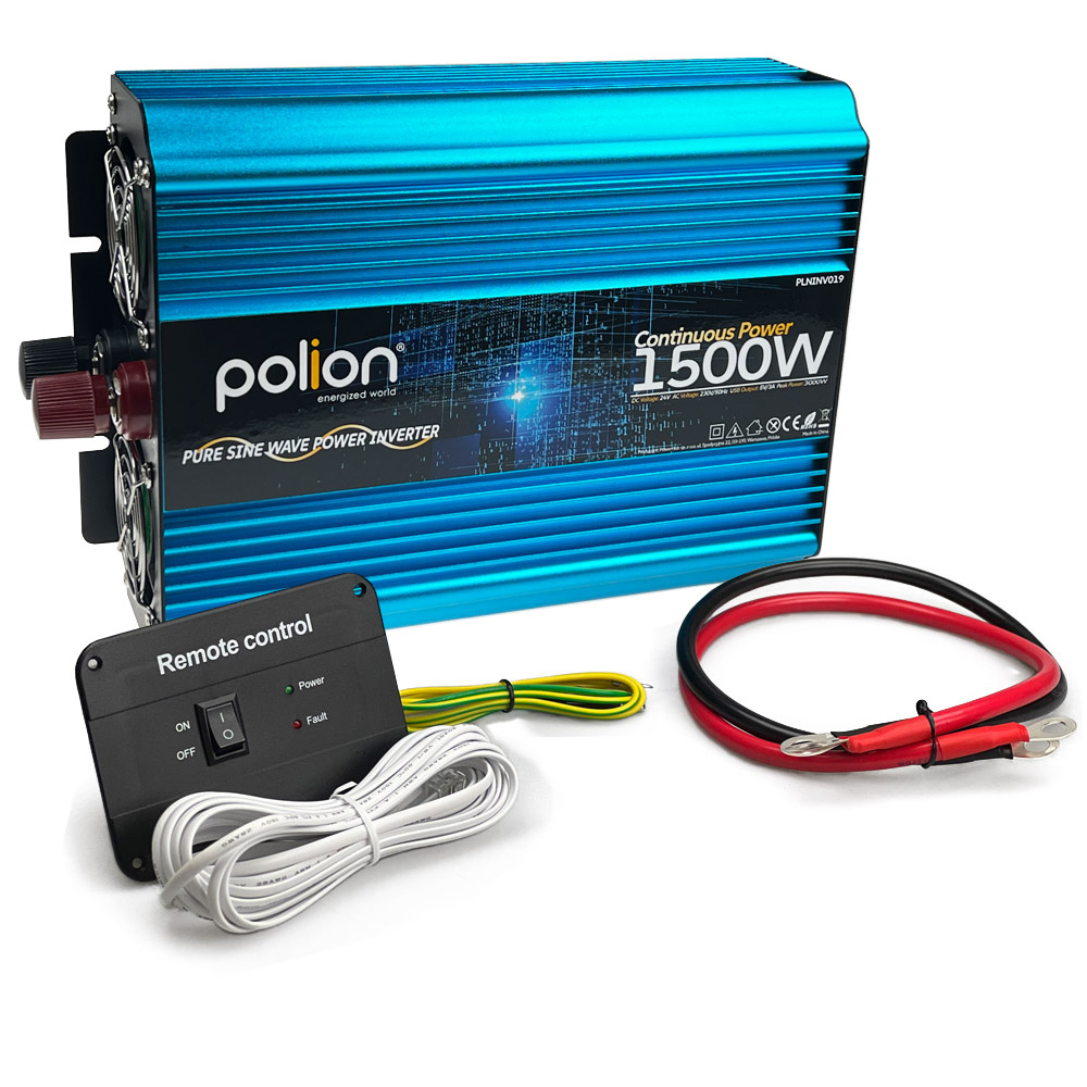 Przetwornica POLION 24V/230V 1500W czysty sinus, pilot, LCD Niebieski