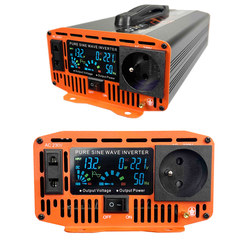 Przetwornica POLION 12V/230V 1200W czysty sinus, LCD Czarny