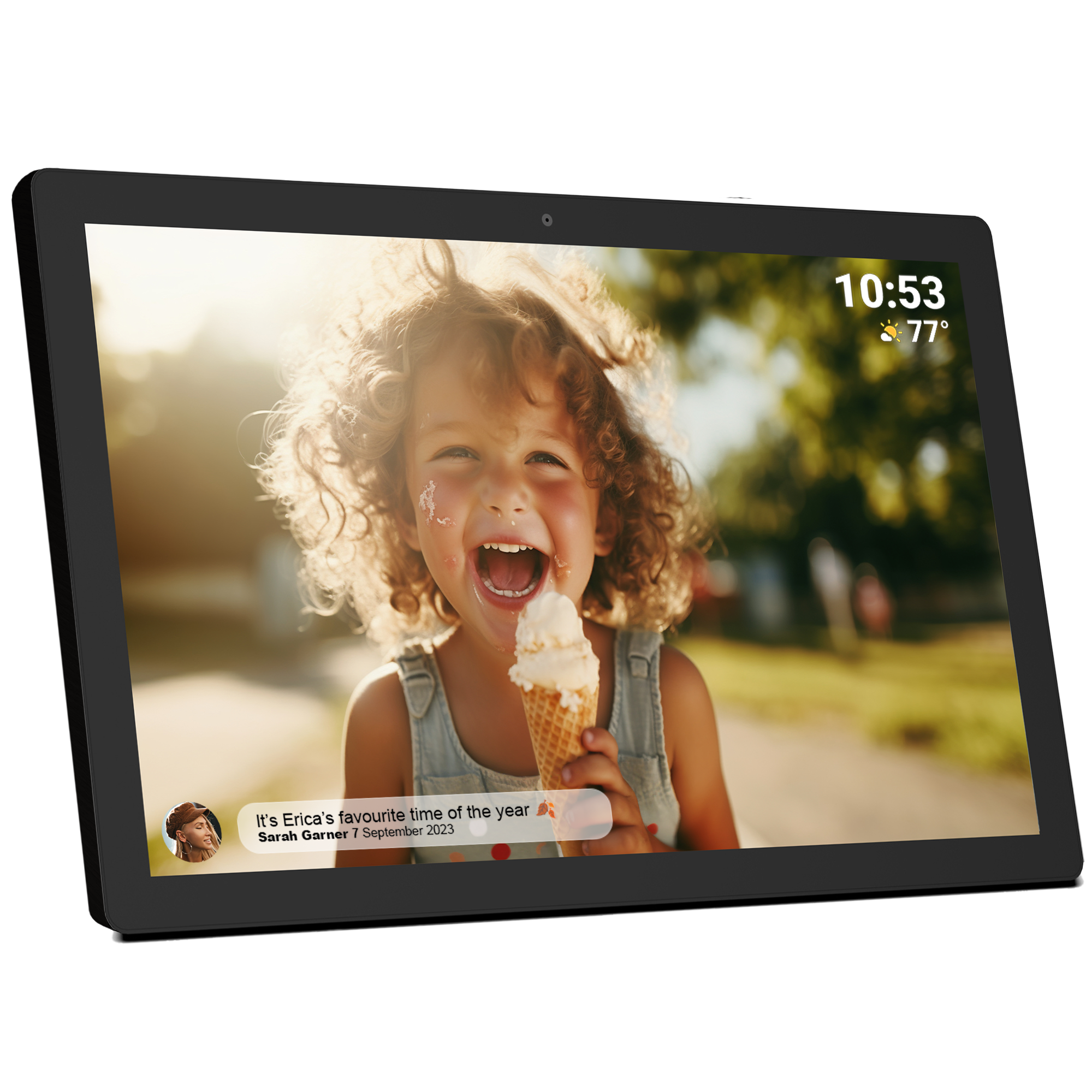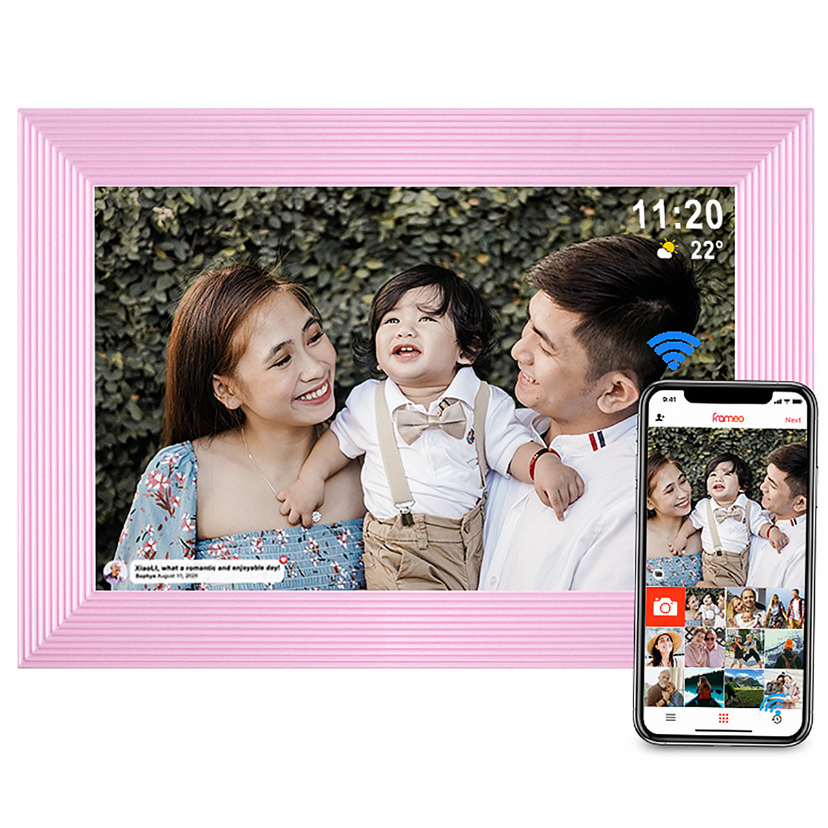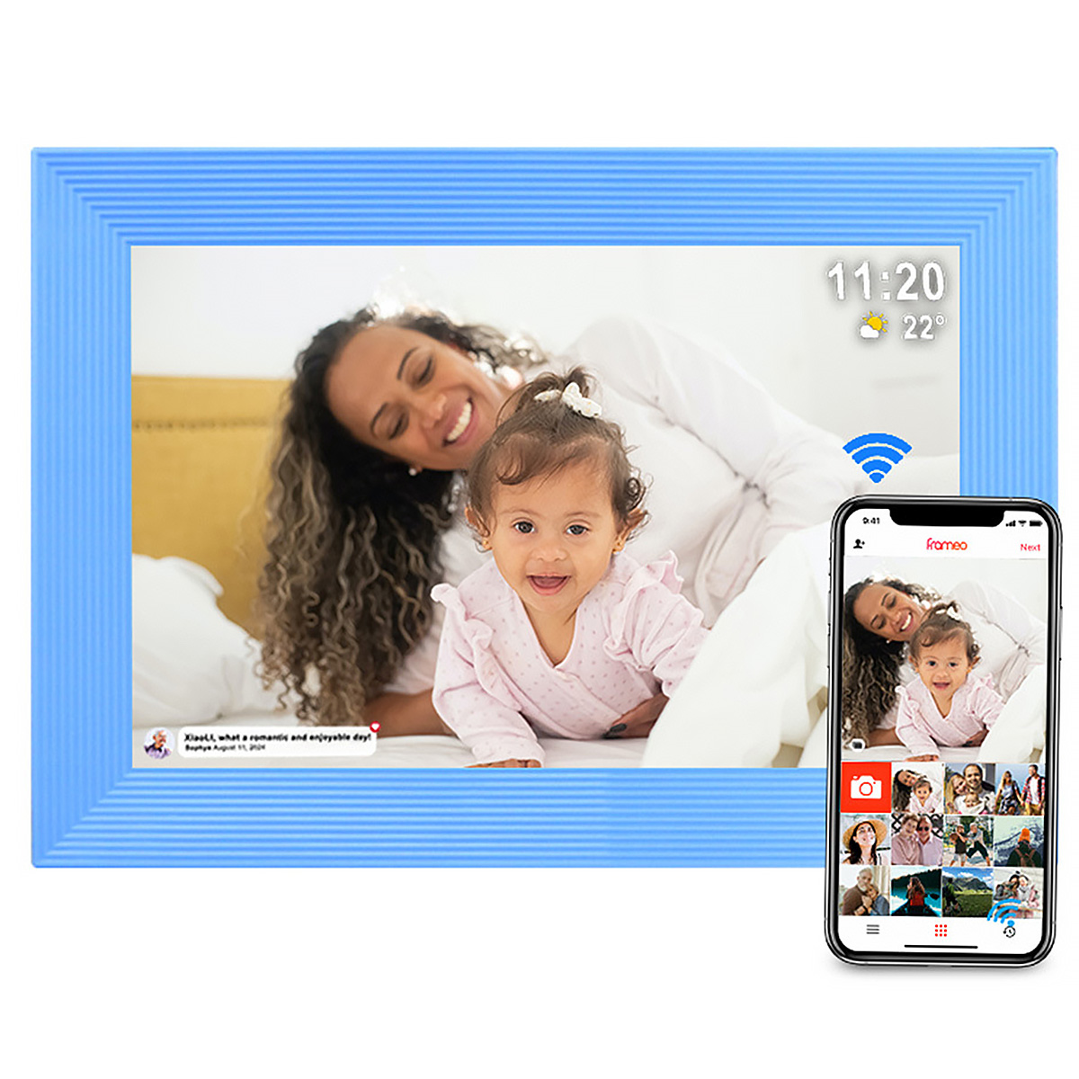 Frameo WiFi cyfrowa ramka na zdjęcia -10,1-calowa ramka na zdjęcia 1280x800 HD z ekranem dotykowym IPS, 16 GB pamięci, kalendarz/zegar/odtwarzacz muzyki/foto/wideo, obsługa USB/karty SD/USB/3,5 mm gniazdo słuchawkowe, automatyczne obracanie, montaż ścienny, natychmiastowe udostępnianie zdjęć/wideo, najlepszy wybór na prezent