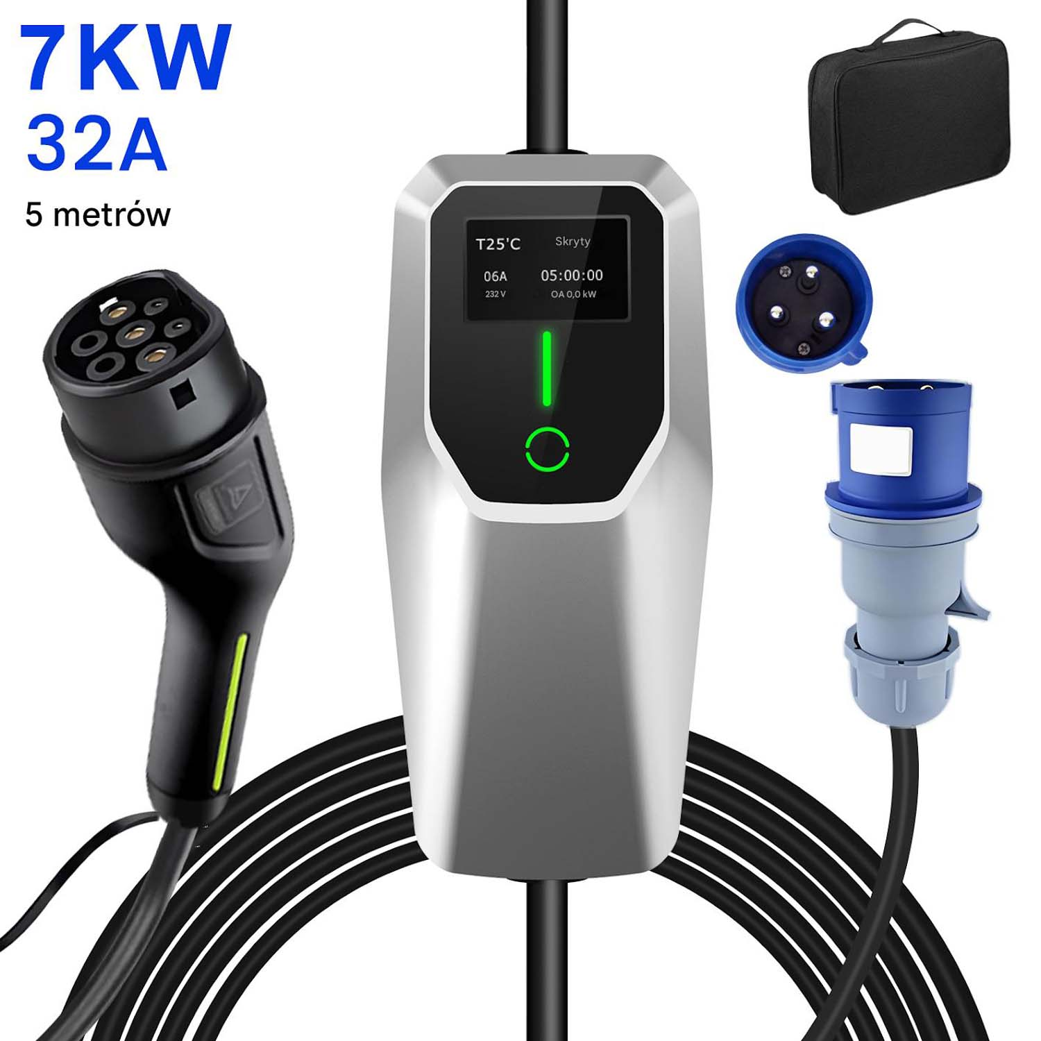 Wallbox AWESAFE 7KW 32A 5m 1-fazowy kabel ładujący EU Typ2 EV CEE czarny