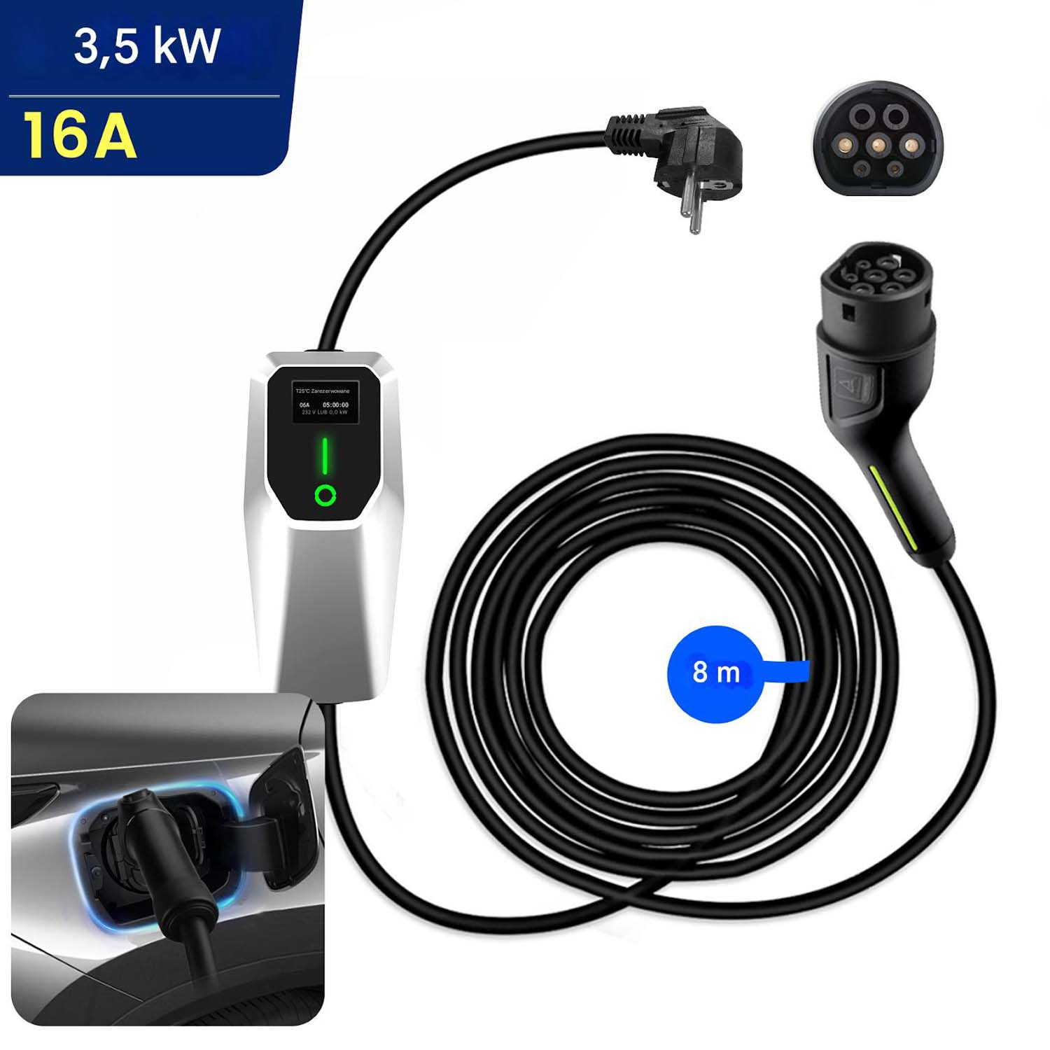 Ładowarka EV HEXINEX 3.5kW 16A 8m Czarny